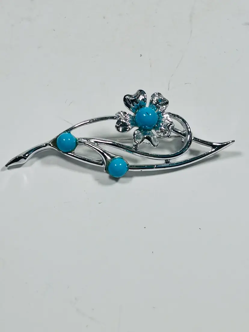 This vintage Sarah Coventry brooch pin is a beautiful piece of jewelry that will add a touch of elegance to any outfit. The intricate flower design with aqua blue beads and silver tone metal is a stunning representation of beauty and nature. The brooch is perfect for special occasions such as weddings, anniversaries, graduations, and more.