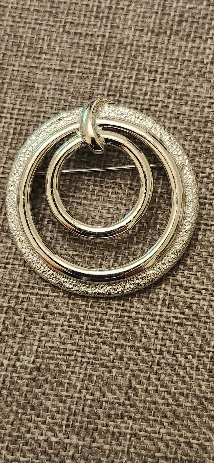 Vintage Signed Sarah Coventry Silvertone brooch pin Circle in a circle