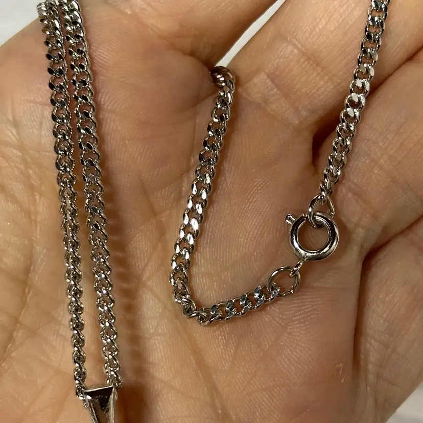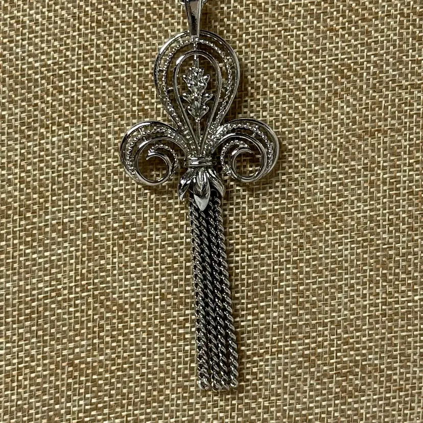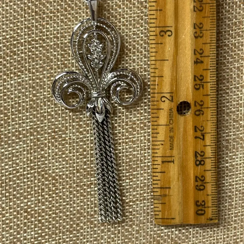This gem is in wonderful condition. 24” with 3 1/4” pendant