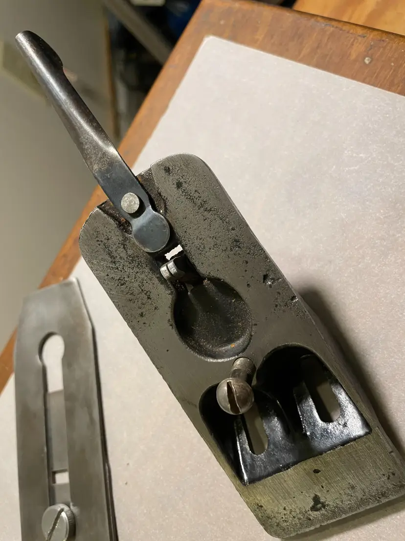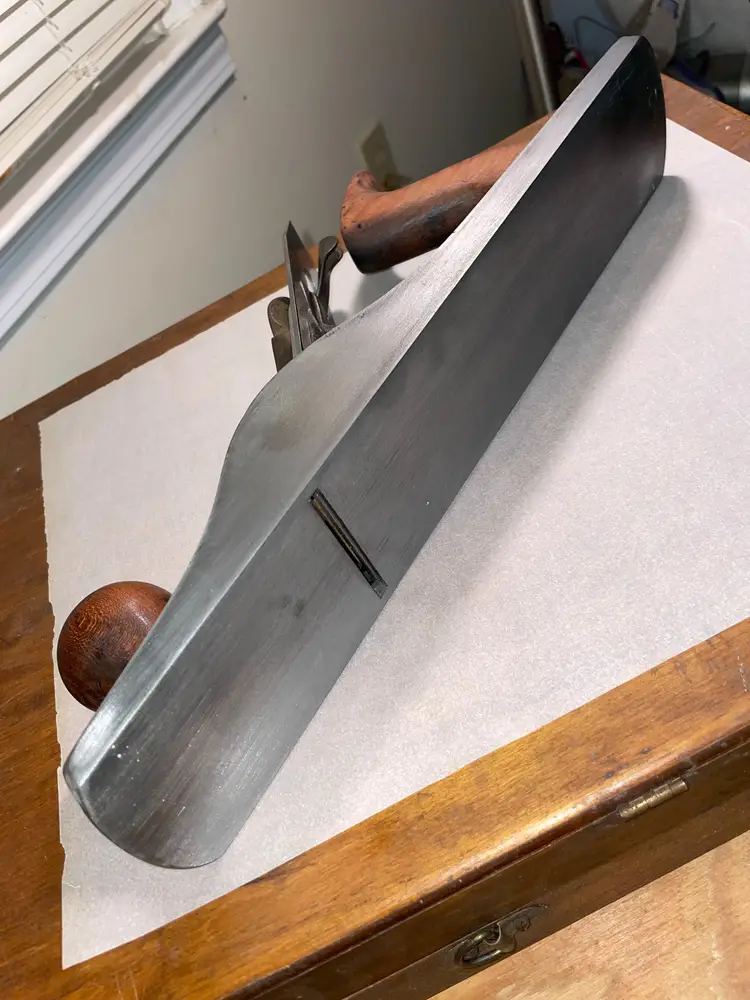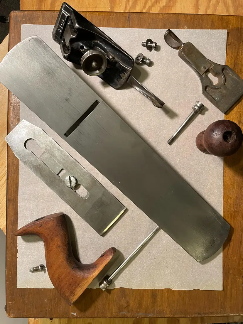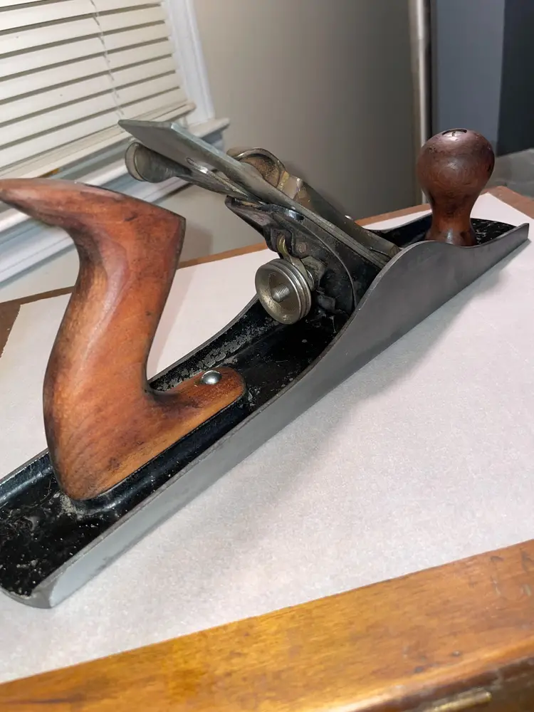 Has features of a Sargent series 400 Type 6 (1942-50) hand plane, in excellent used condition with all parts functioning as designed. The tote and knob are in good condition, no cracks, attaches snuggly to the body. Plane has been disassembled and subjected to light cleaning with some blemishes and scratches on the body, frog and blade assembly.