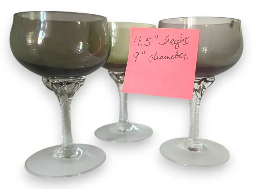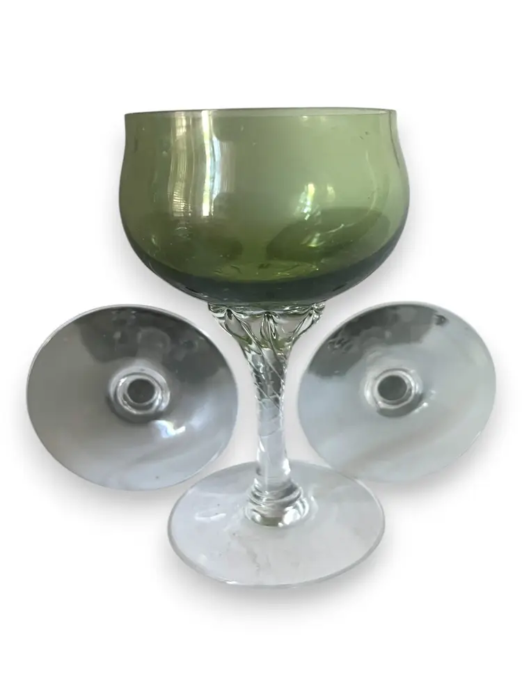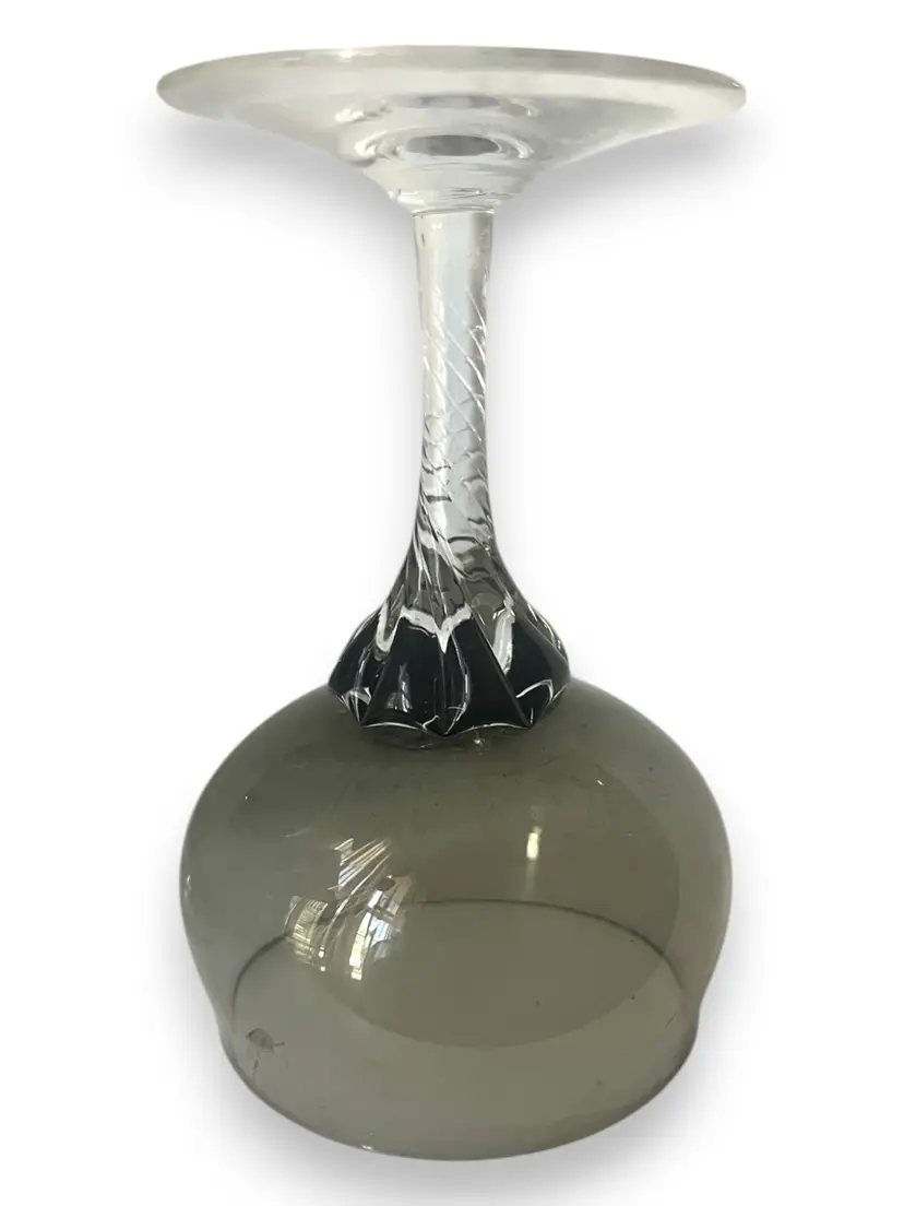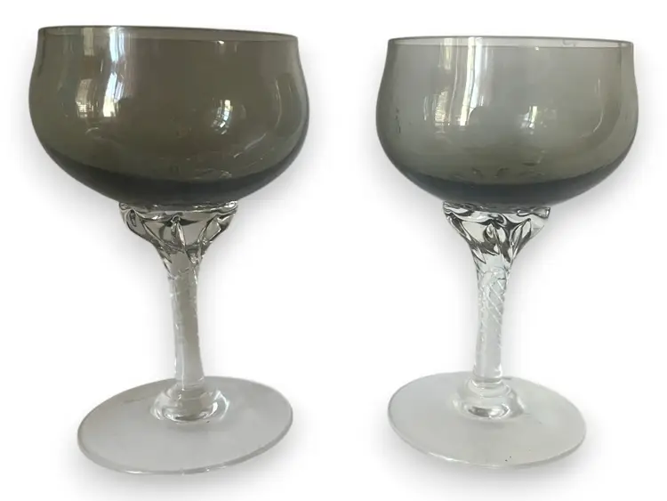 Vintage Sasaki Hawthorne Hand Blown Crystal Champagne Glasses | green gray black smoke