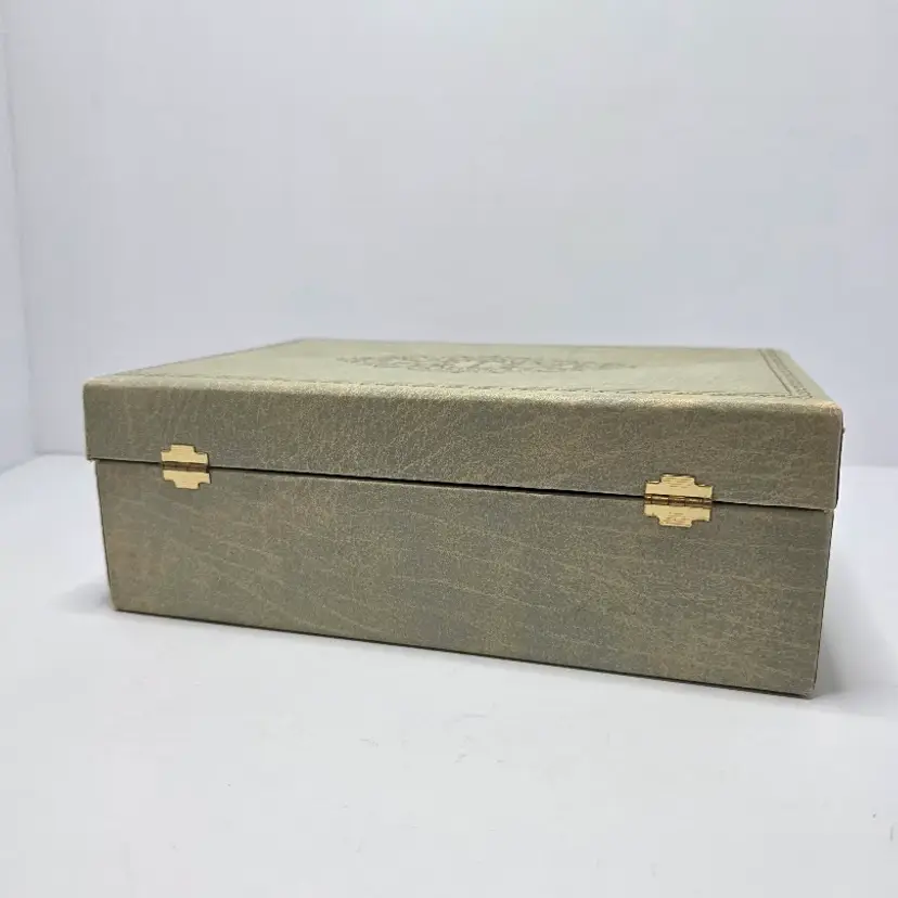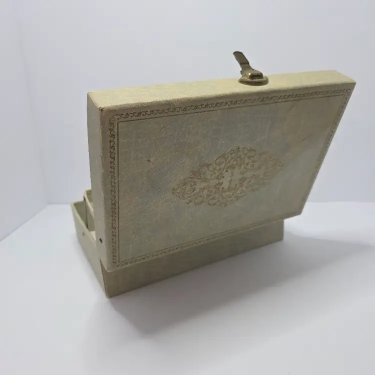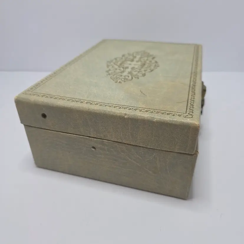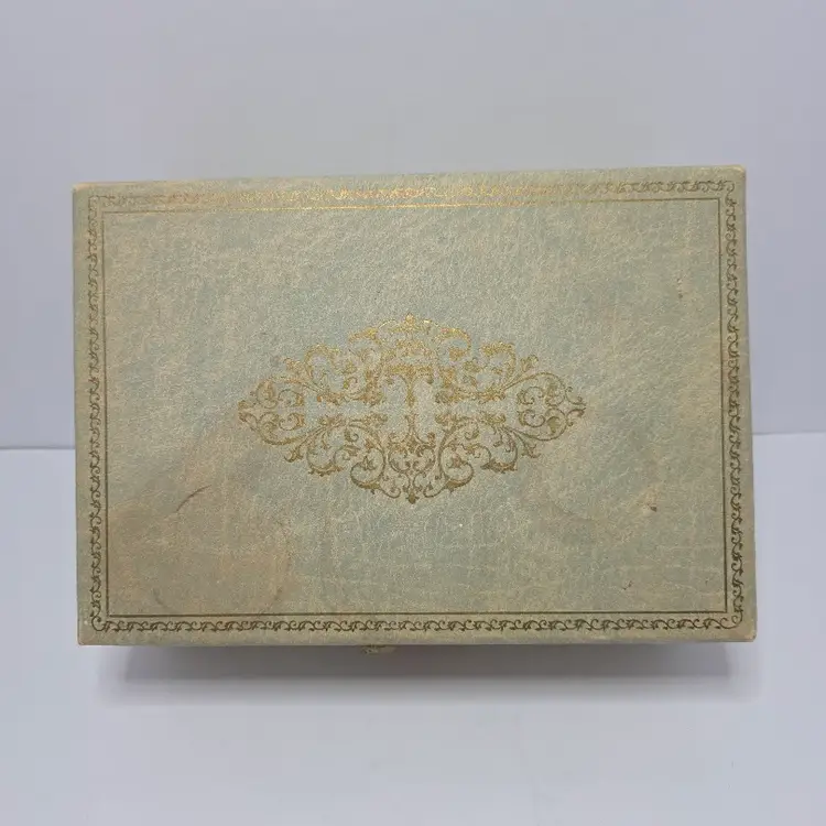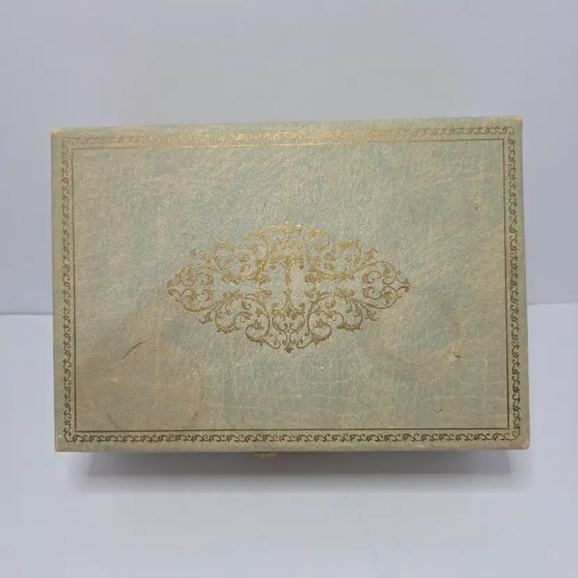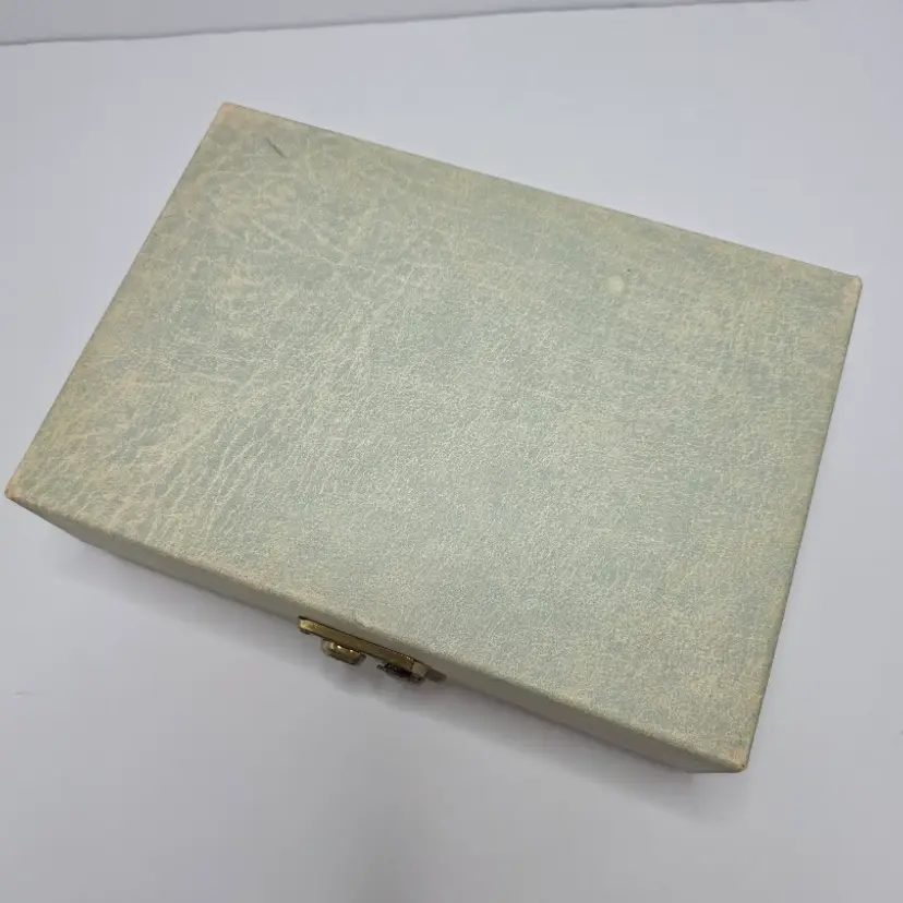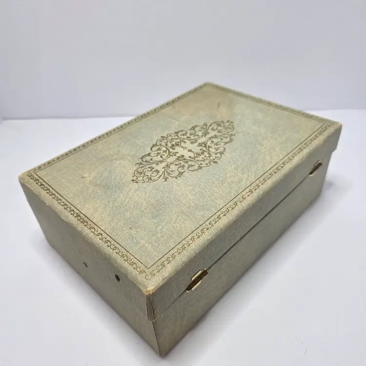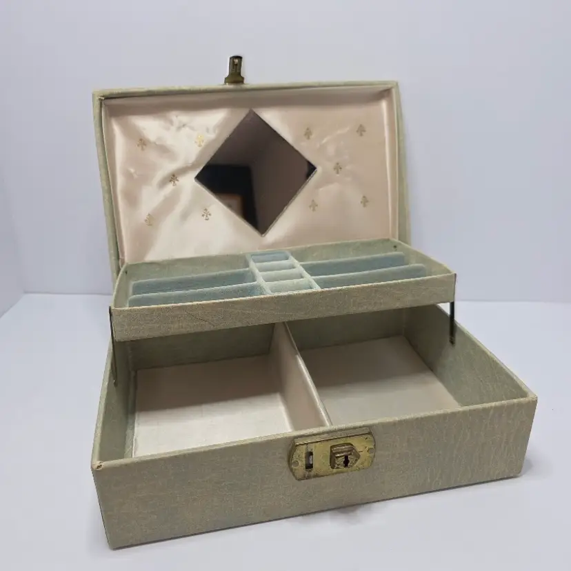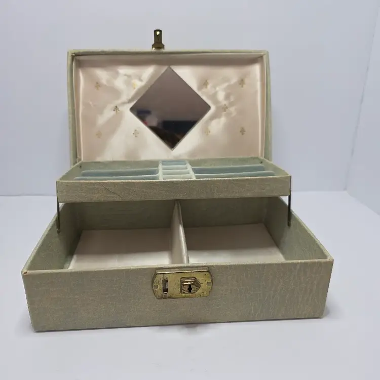 Keep your treasures safe in this charming vintage jewelry box. Featuring a satin-lined interior with multiple compartments and a mirror, it's perfect for organizing your favorite pieces. A lovely addition to any vanity or dresser. 9.75" x 6.75" x 3.5"