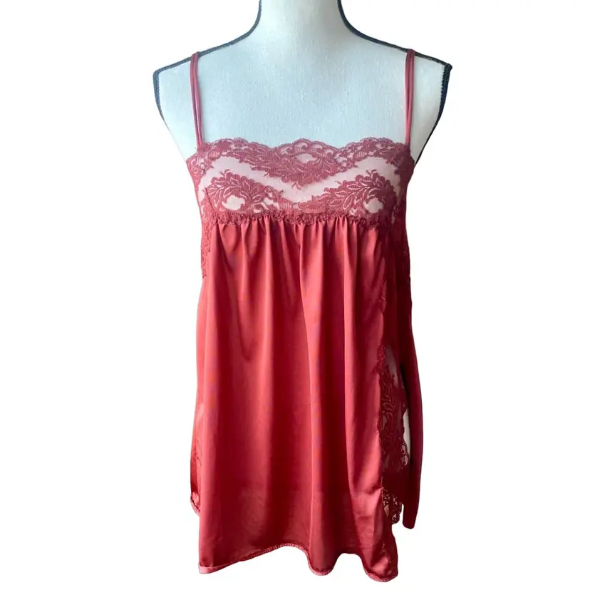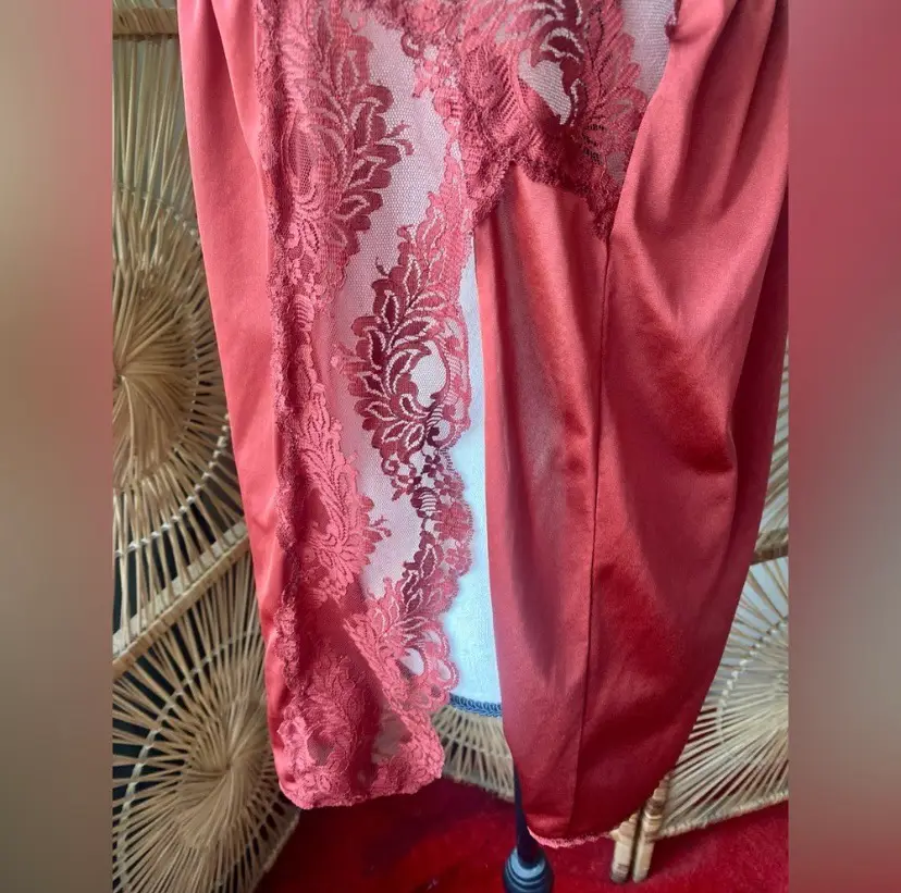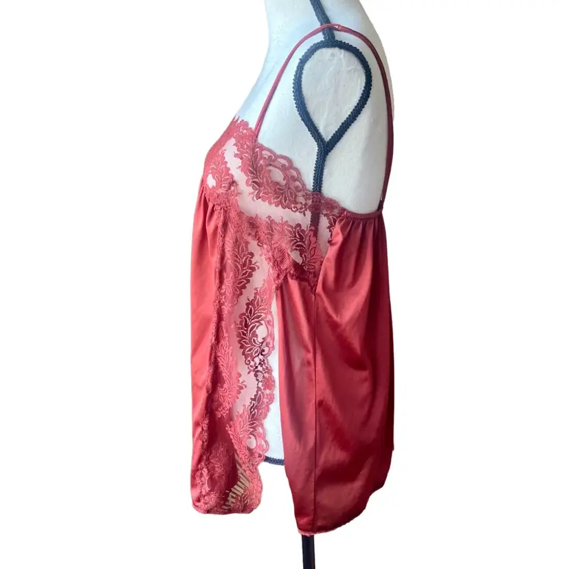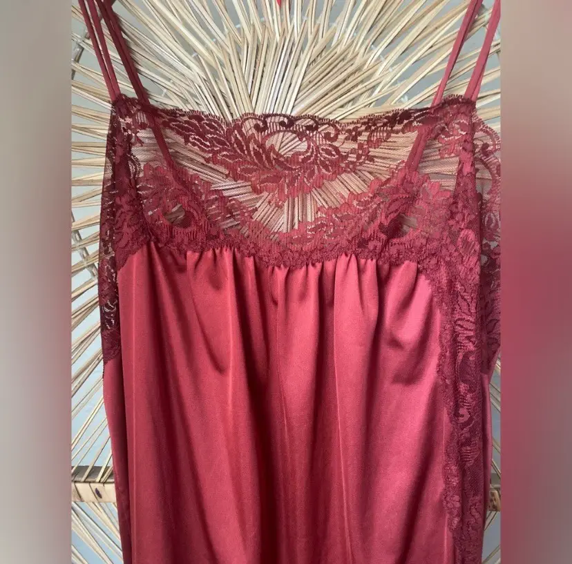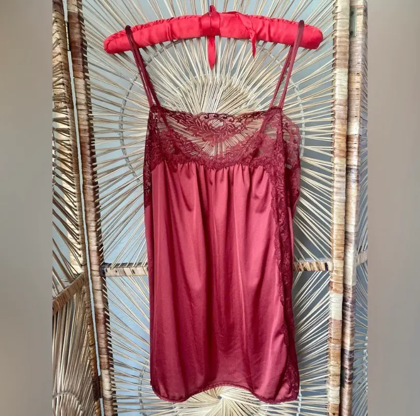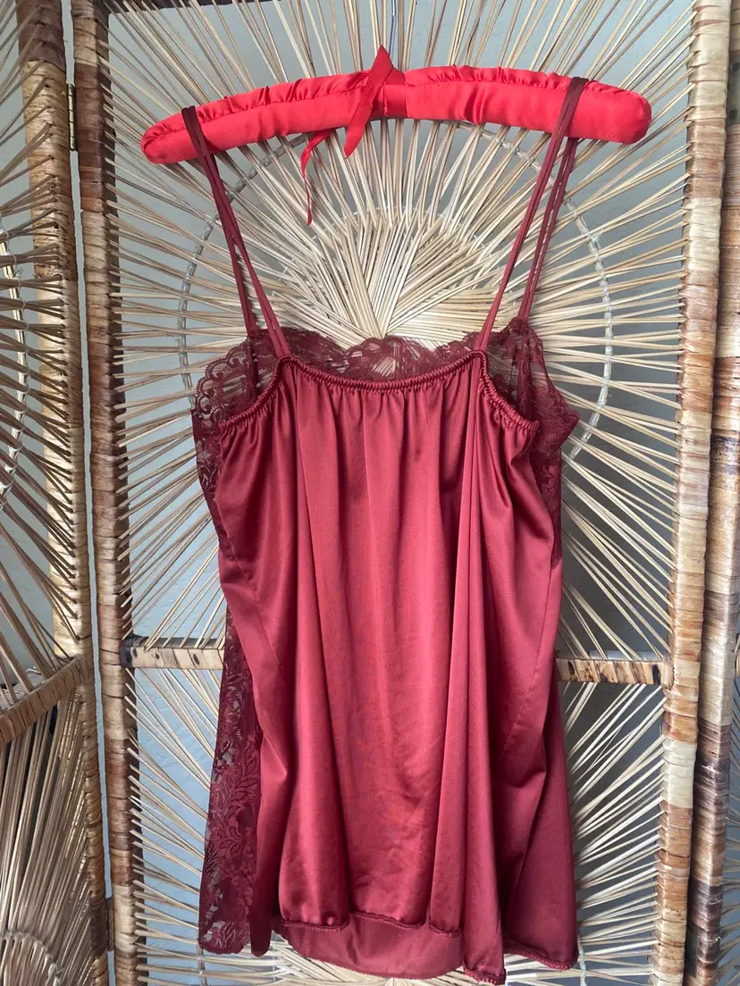 Vintage Satin Nylon Lace Burgundy Camisole Lingerie Top