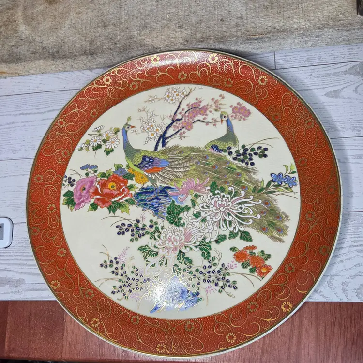 Marked Satsuma and has original sticker. Featuring peacocks and flowers.