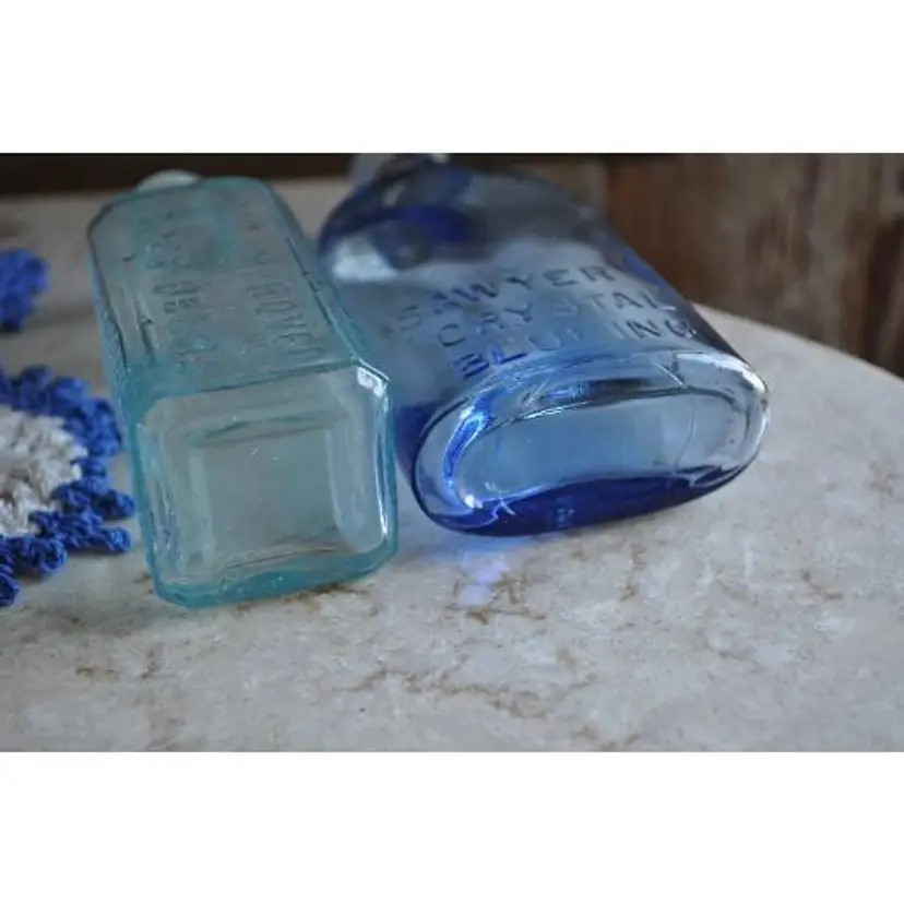 c1920s Sawyer's Crystal Blueing, Small Size Cornflower Blue Glass Household Bottle, with embossing as follows (Sawyer's Crystal Blueing) measures 5 1/4 inches tall, this bottle is in Good Condition