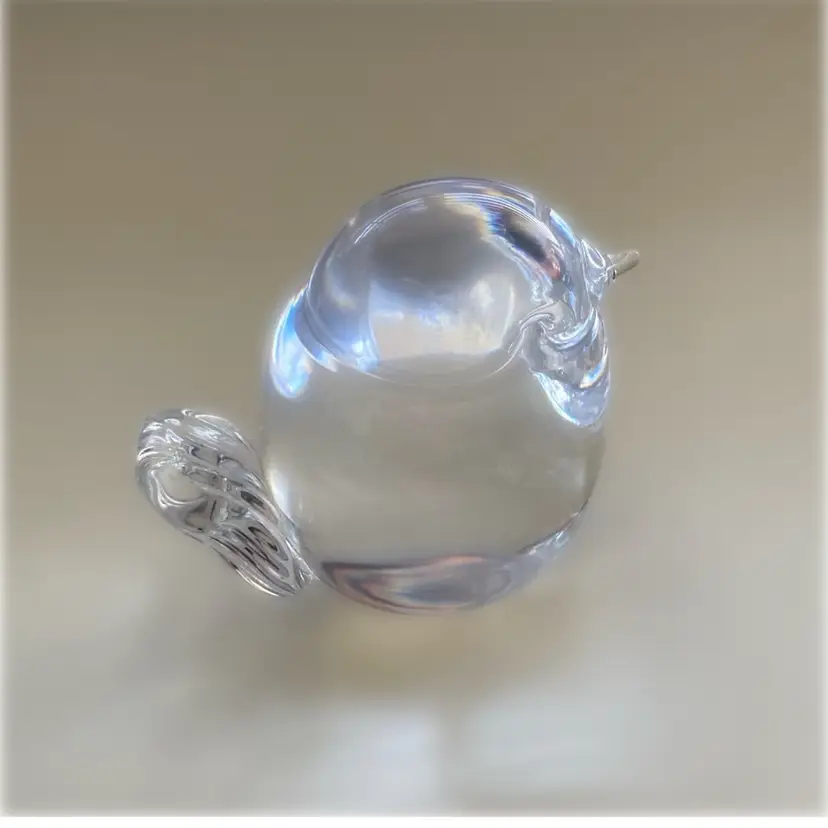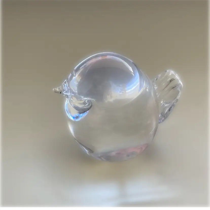 I believe this is a Scandinavian clear crystal glass bird. I cannot figure out the etched name on thebottom. The bird measures 1 1/2” x 2” x 2” tall. In good condition.