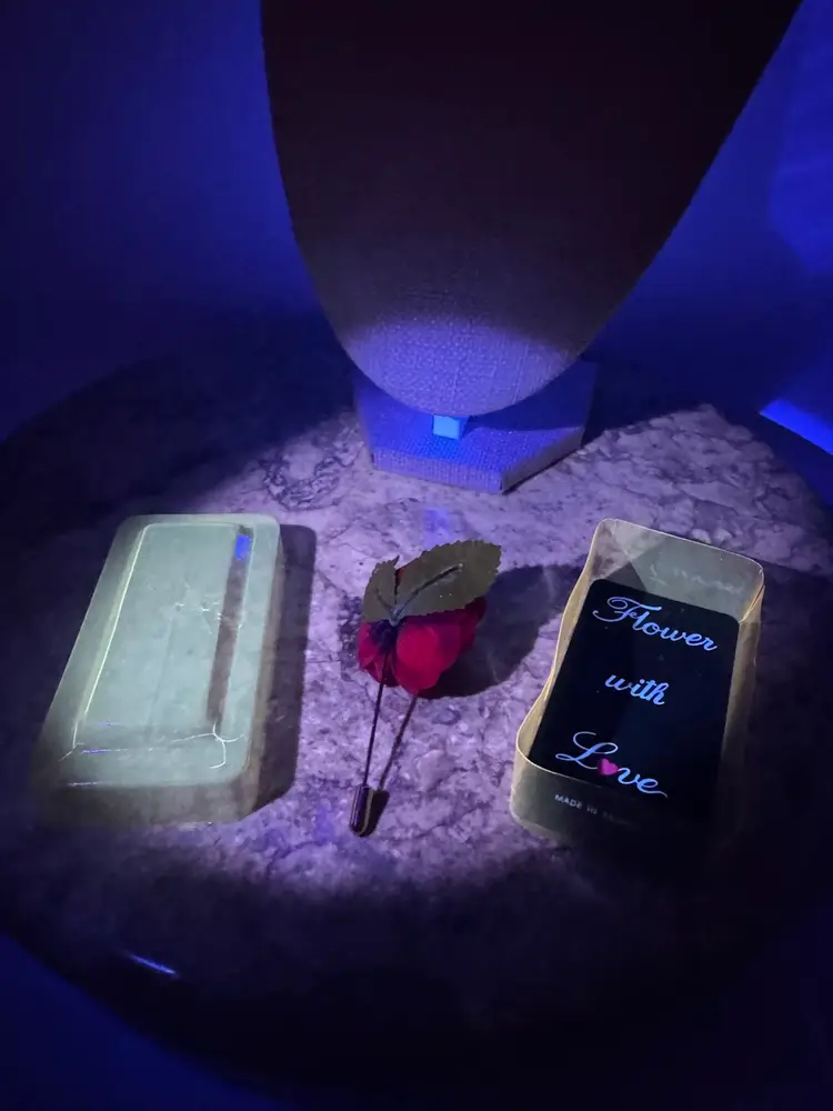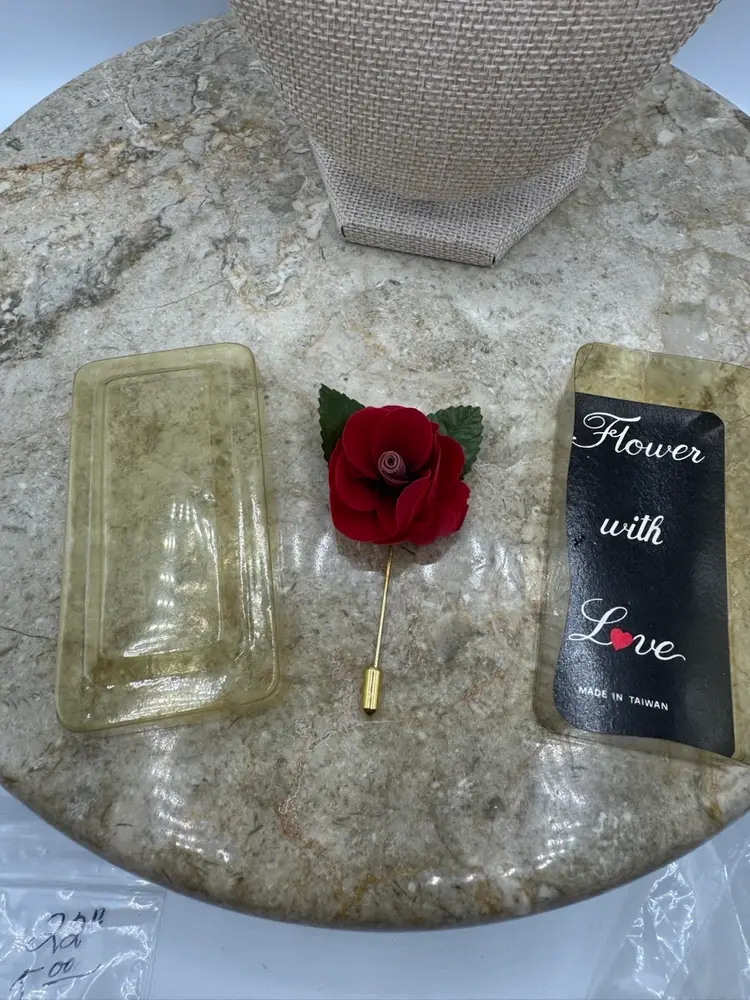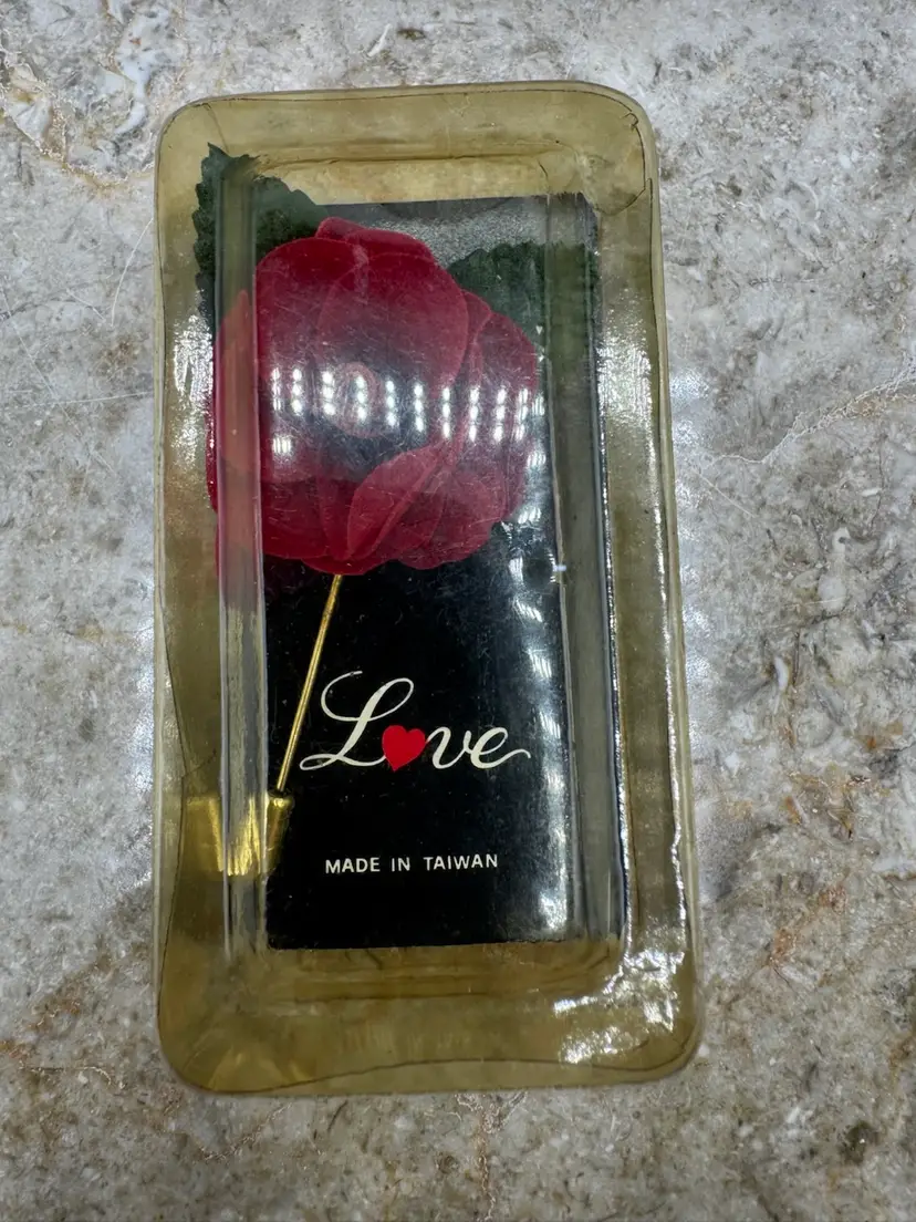 Vintage Scented Rose Stick Pin With Original Box That Has UV Glow. What a cute nostalgic valentines gift for your sweetheart. A collectors dream! Great vintage condition. Measures 3” X 1/2”