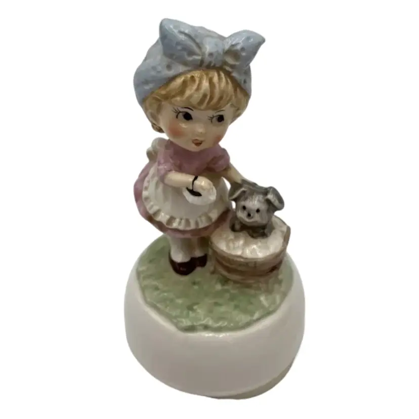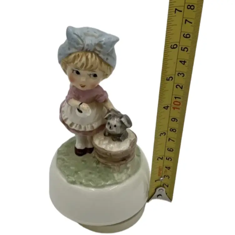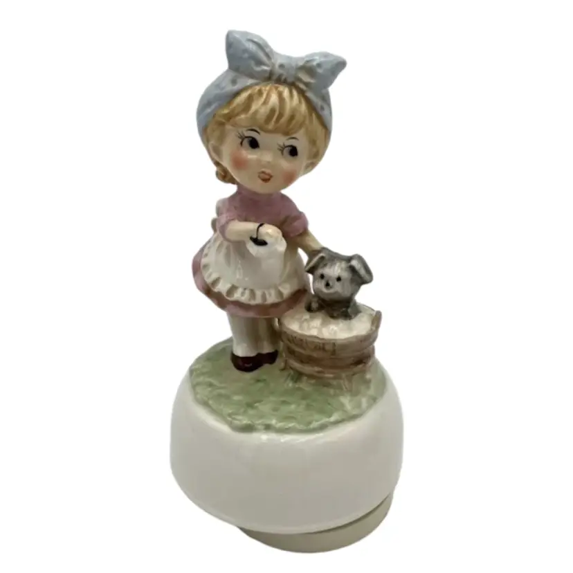 Vintage Schmid Rotating Music Box Girl Washing Her Dog (Plays Both Sides Now)