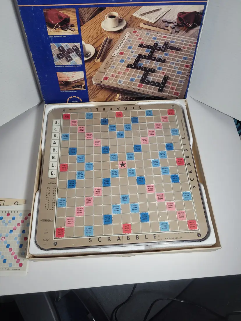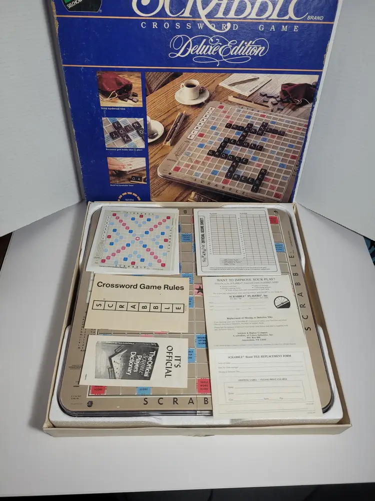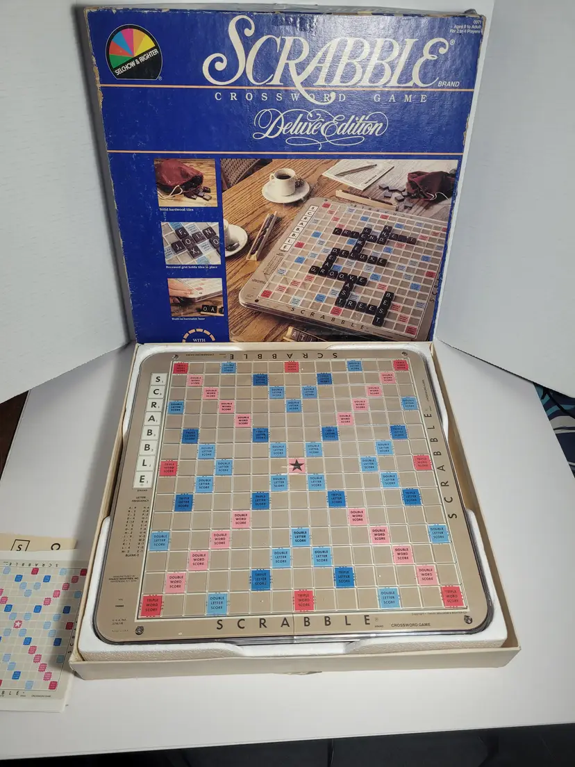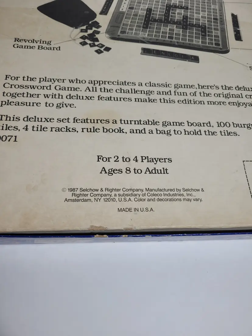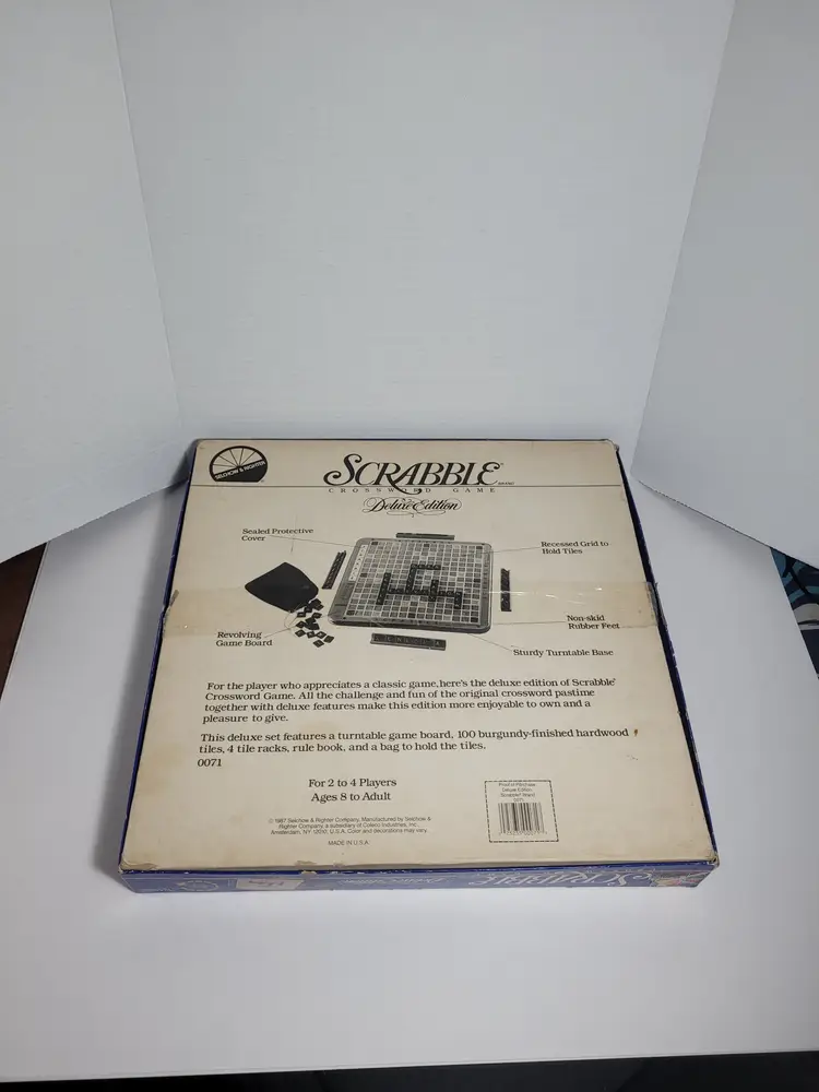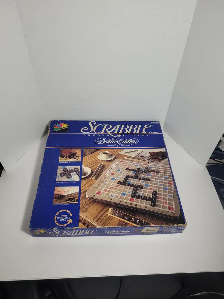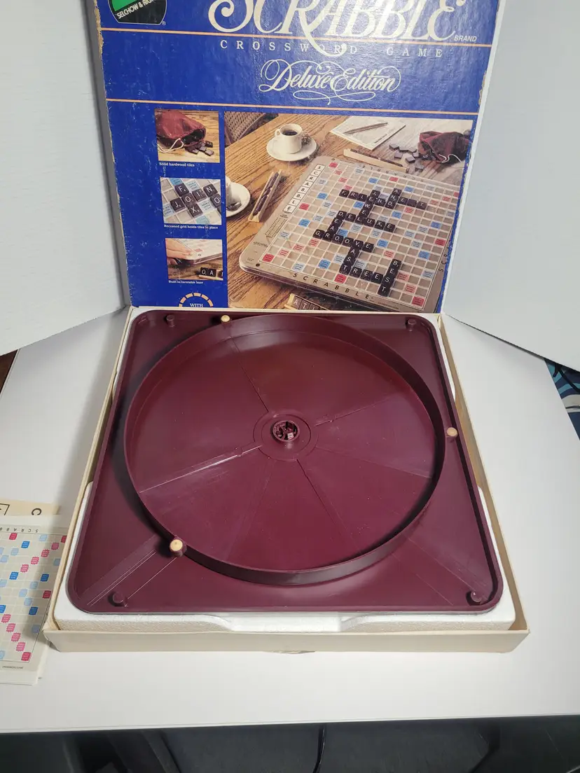 Vintage Scrabble Deluxe Edition Turntable Base 1987 Crossword Word Game Complete Pre-Owned - Some wear from normal use Small Crack on the bottom of the turntable May be missing some score sheets Box may show signs of wear See ALL photos for best description Contact me with any questions Ships fast