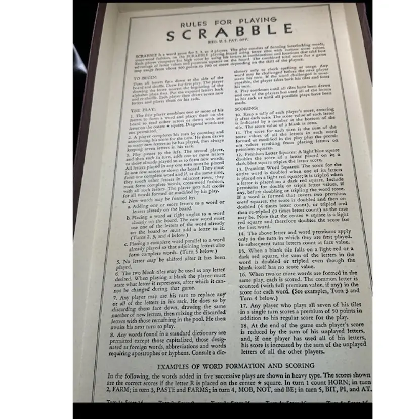 Enjoy hours of classic fun with this vintage Scrabble game from 1953. This Selchow & Righter Co game features beautiful wood tiles and comes with a 4-holder box, making it perfect for game nights with friends and family. The game is easy to learn and provides endless entertainment for all ages. It's a great addition to any collection of board and traditional games.