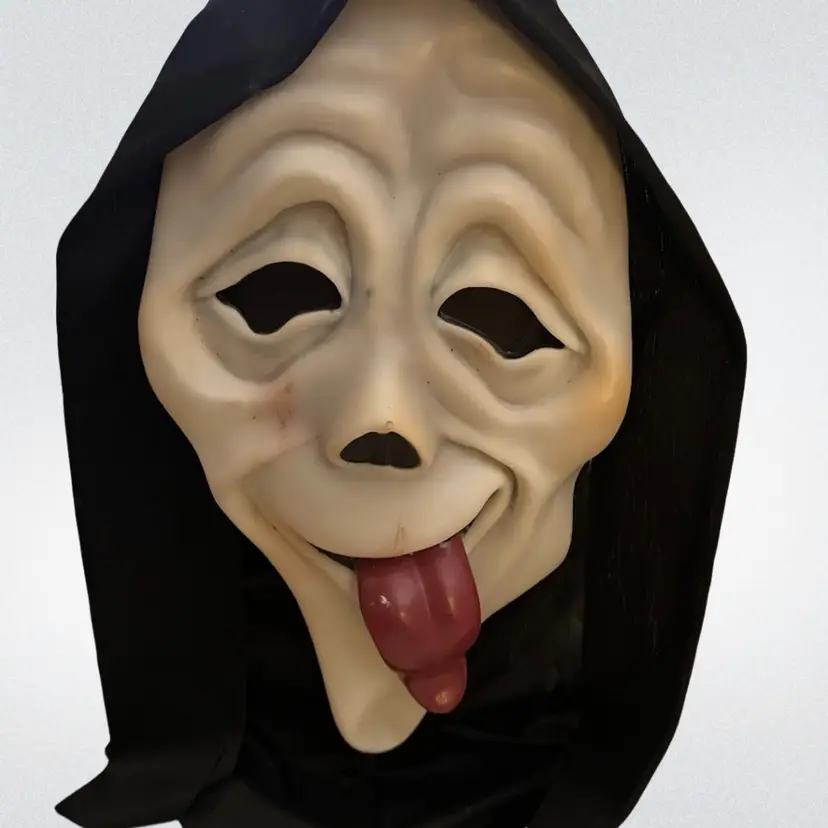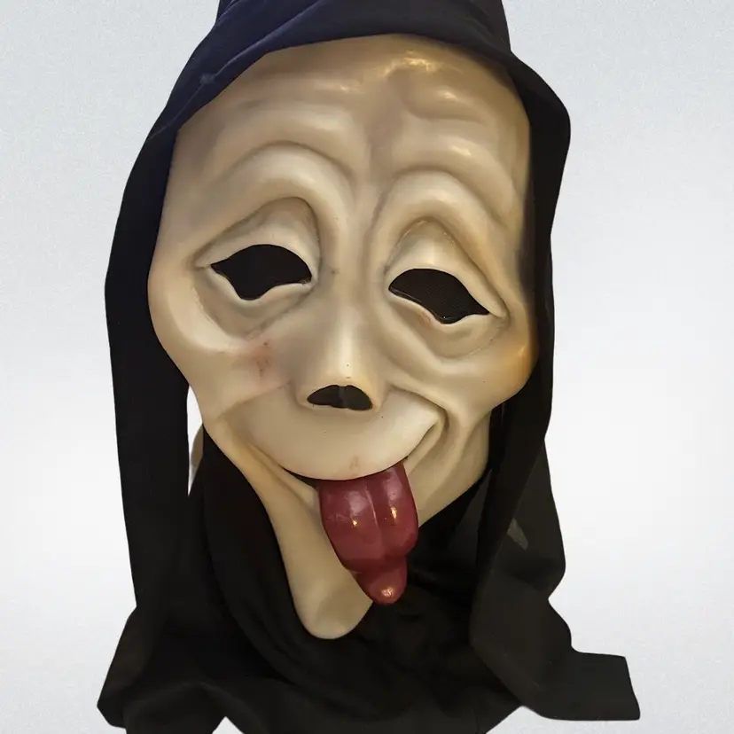 Mask overall is in very good condition. It has one tiny imperfection on the tongue, a white spot. This mask will fit an adult face.