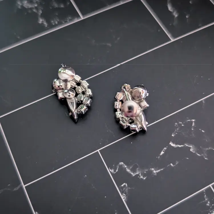Preowned vintage earrings, sold as shown - I am unsure of material type(s) because of this. Pictures show different angles for you to review - while I attempt to note any defects, some tarnish/signs of wear may be visible that are not otherwise stated.