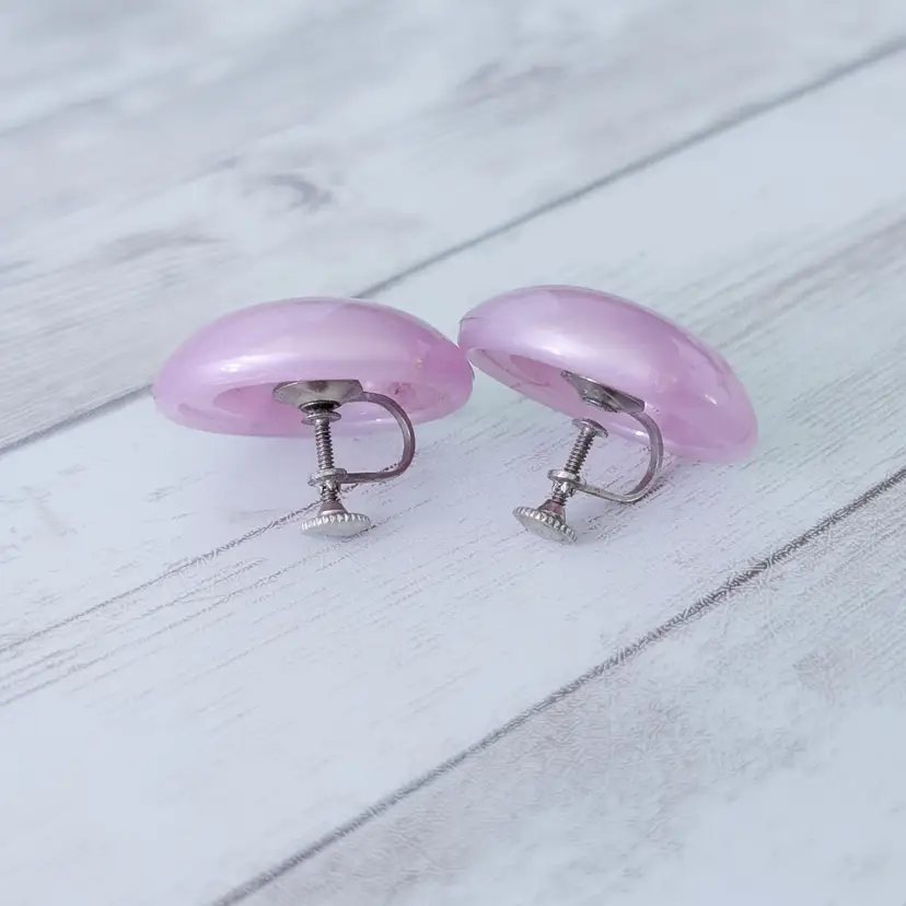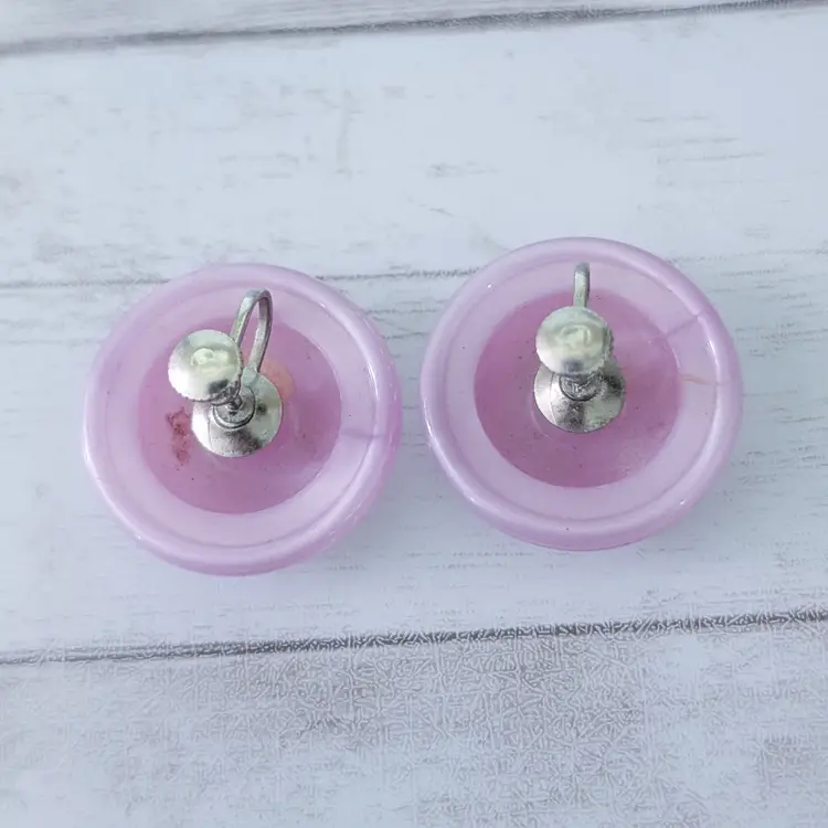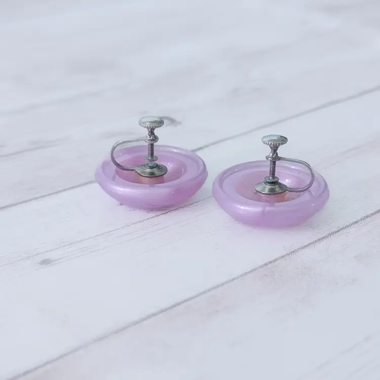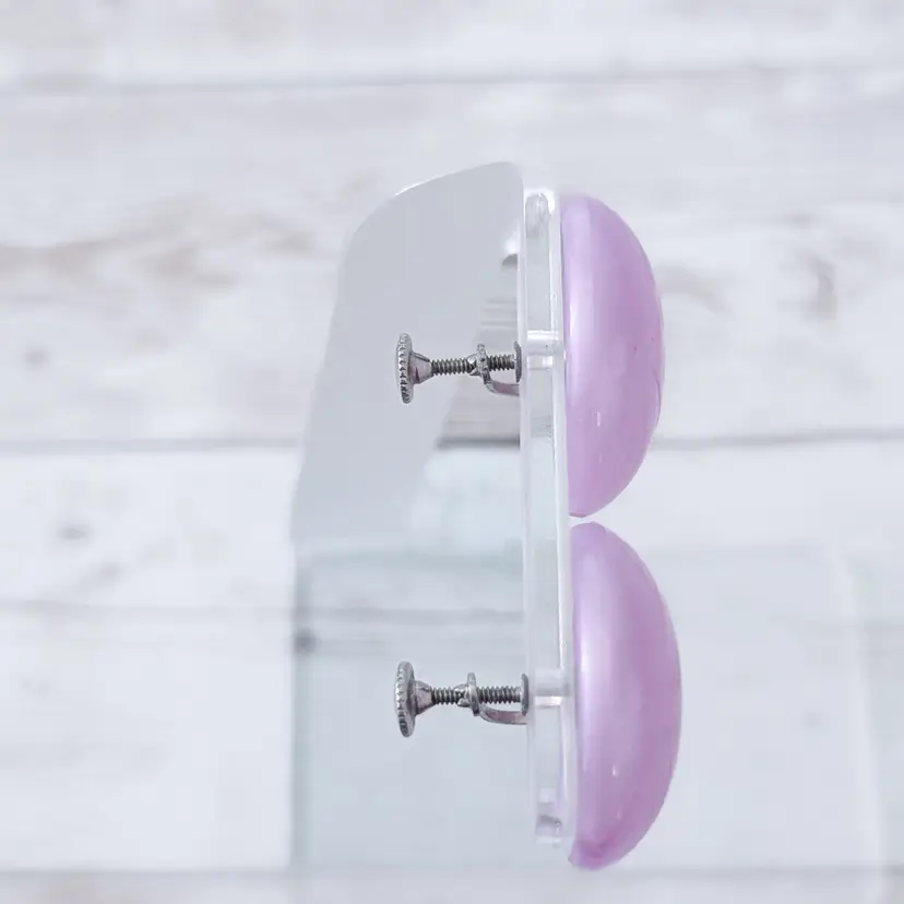 Vintage Screw On Earrings Large Domed Lilac Retro Statement 1 & 1/8"
