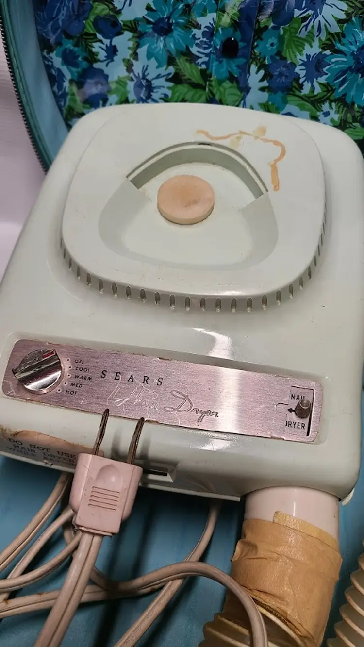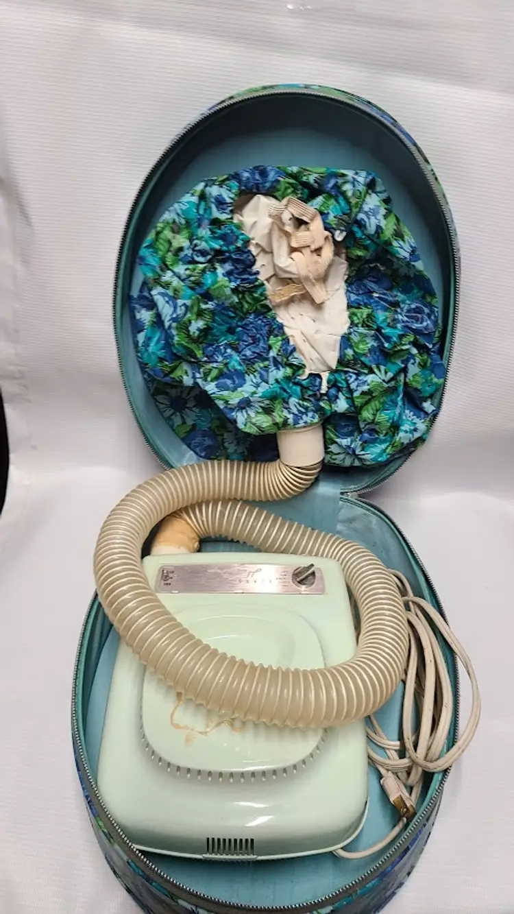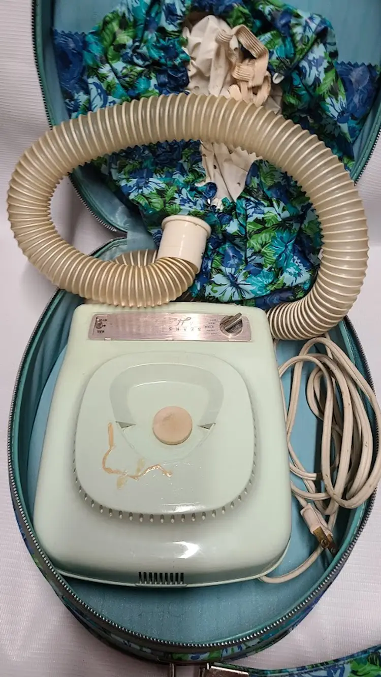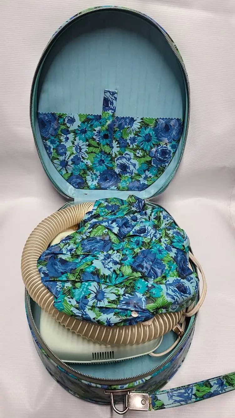 Vintage Sears Bonnet Hair Dryer with Case Blue Floral Model 307.87500