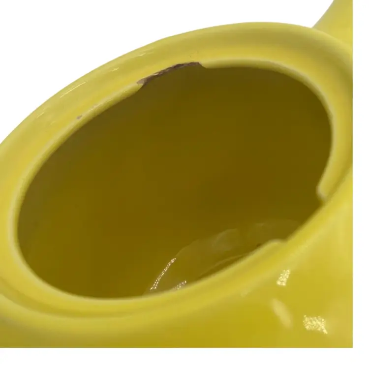 The teapot is in good used condition. There are no cracks, but there is a chip on the inner lower edge of the rim of the pot, where the divot from the lid settles in. The teapot is fully functional, but it could also be used for decorative purposes if preferred (as a vase, etc.) Please review the pictures as part of the description. Thank you!