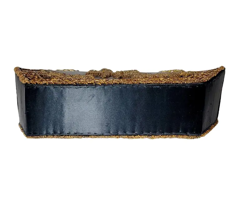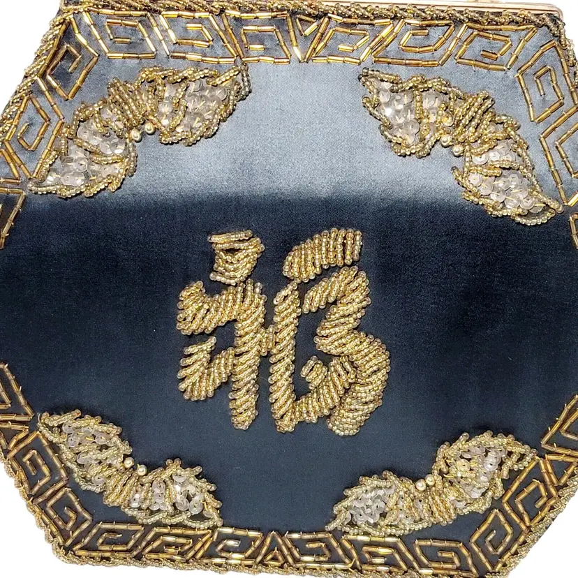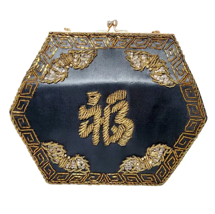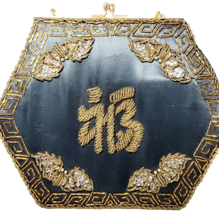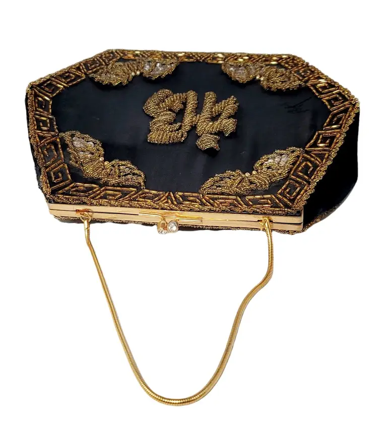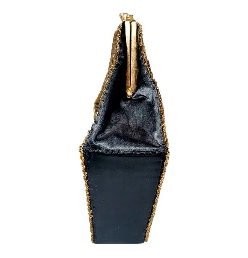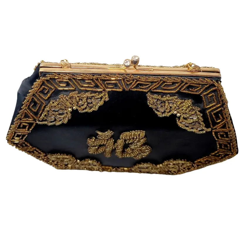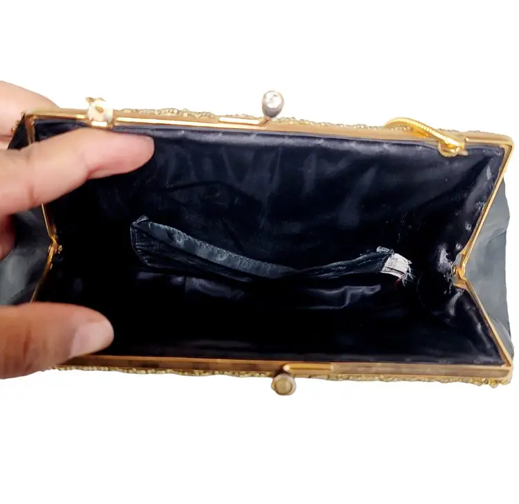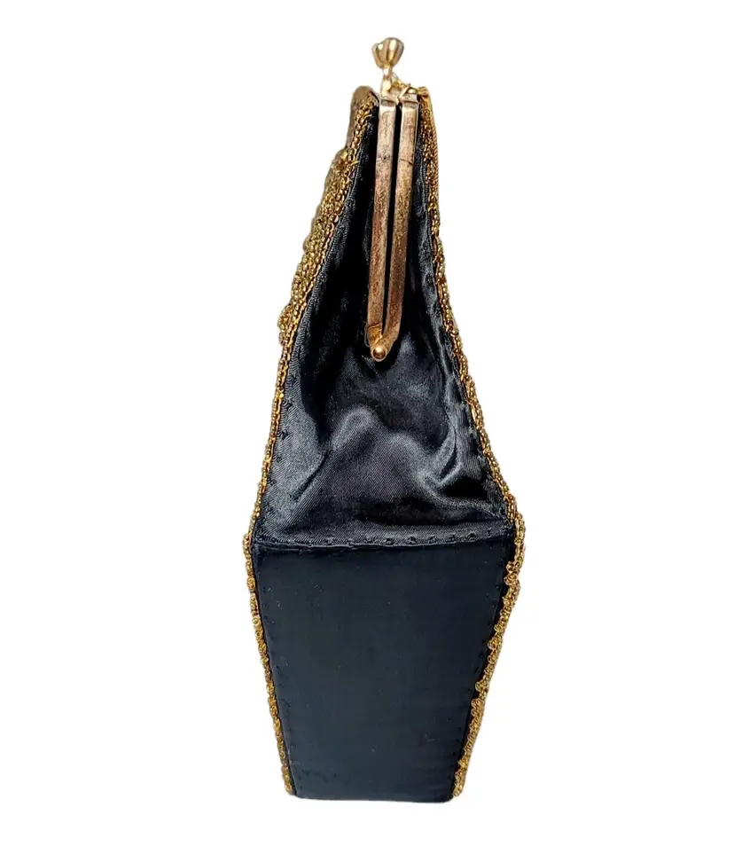 – Pattern: Floral – Closure: Clasp – Handle/Strap Color: Gold – Occasion: Party/Cocktail – Size: Medium – Handle Style: Beaded – Lining Material: Fabric – Hardware Color: Gold – Fabric Type: Satin – Exterior Material: Satin – Accents: Beaded, Embroidered – Vintage: Yes – Brand: Vintage – Department: Women – Hardware Material: Gold – Exterior Color: Black – Lining Color: Black – Style: Hand Bag – Theme: Retro/Vintage – Features: Beaded, Embroidered – Country/Region of Manufacture: Hong Kong
