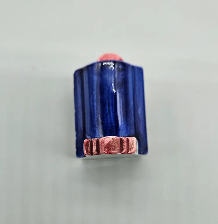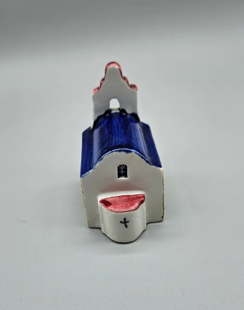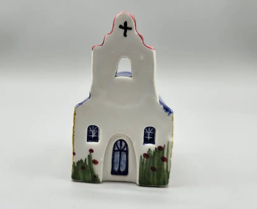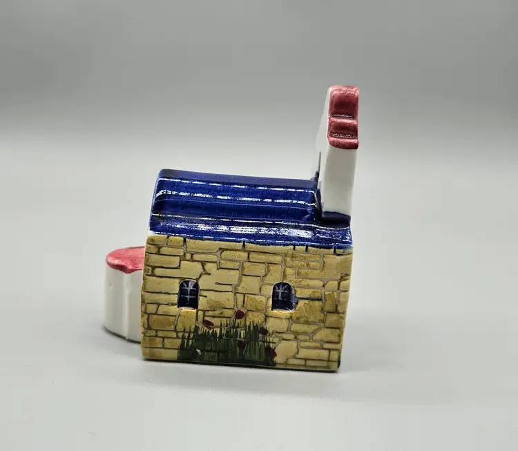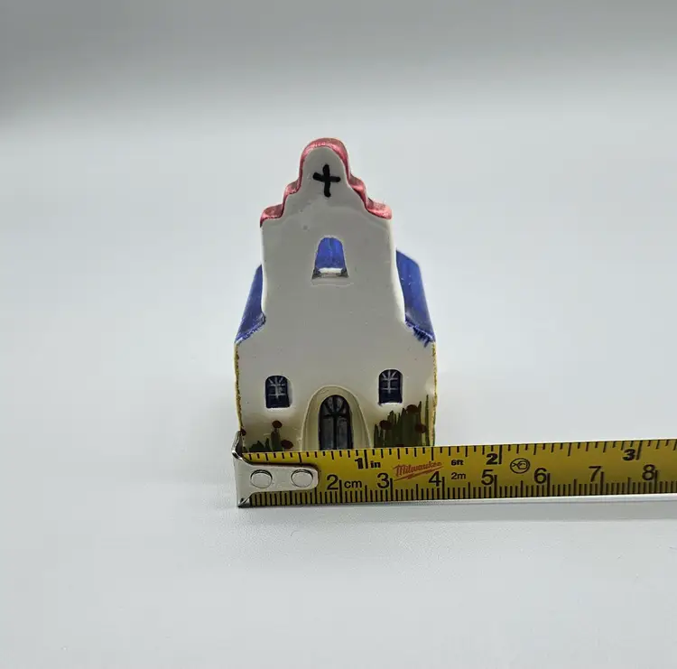 It is impressed, Handmade in Greece, on the bottom. It is in Good, Pre-owned condition, showing minimal wear from previous use. There are no breaks, no cracks, no chips. It is approximately 2 3/4" tall, 1 1/2" wide and 2 1/2" deep.