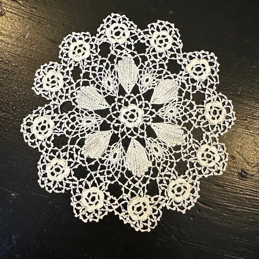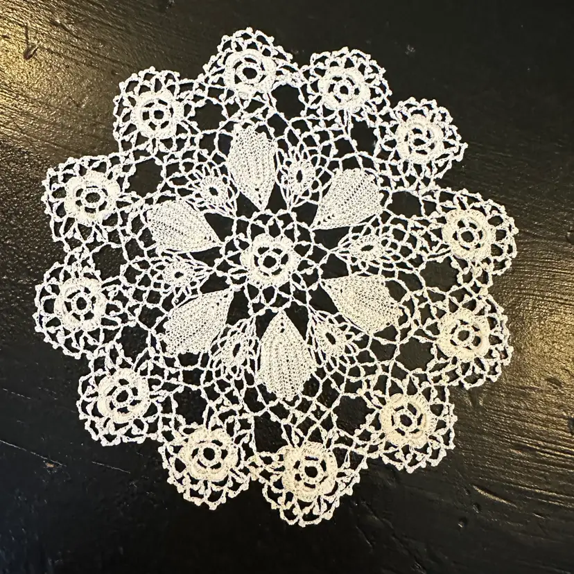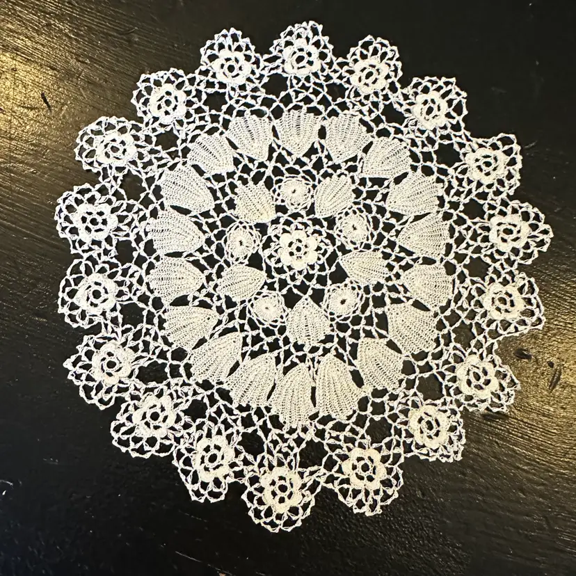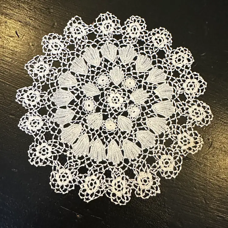 Vintage Set of 2 Matching Hand Crocheted Doilies #45 in good preowned condition. One doily has a diameter of 7.25 inches and the other 5.5 inches. No tears or stains. Please see photos for all the details.