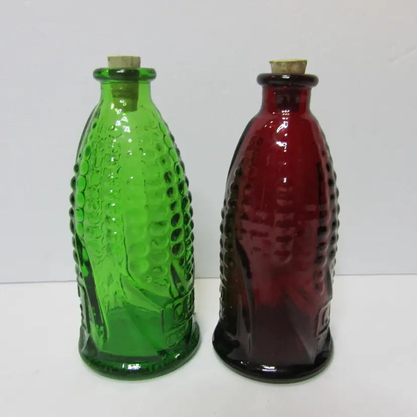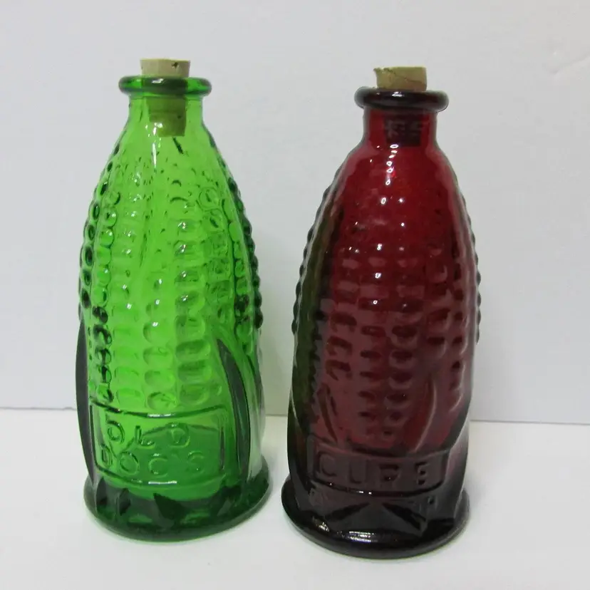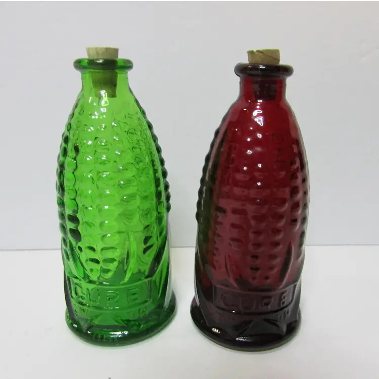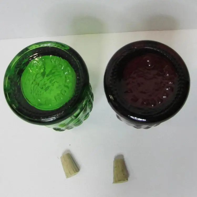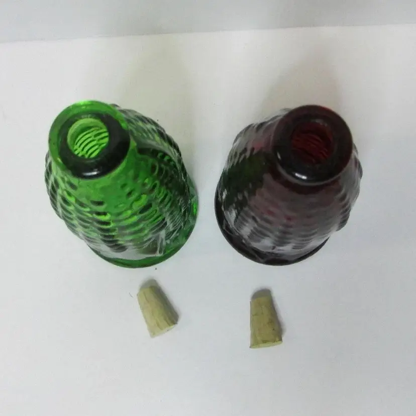 This nice set of bottles has some wear, the corks are not original, but still a lovely set to display. Each bottle is about 3" x 1 1/2" x 1 1/2". This is shipped from a smoke free home. Thanks for looking! locblb-f