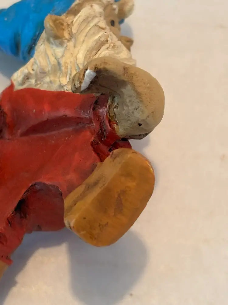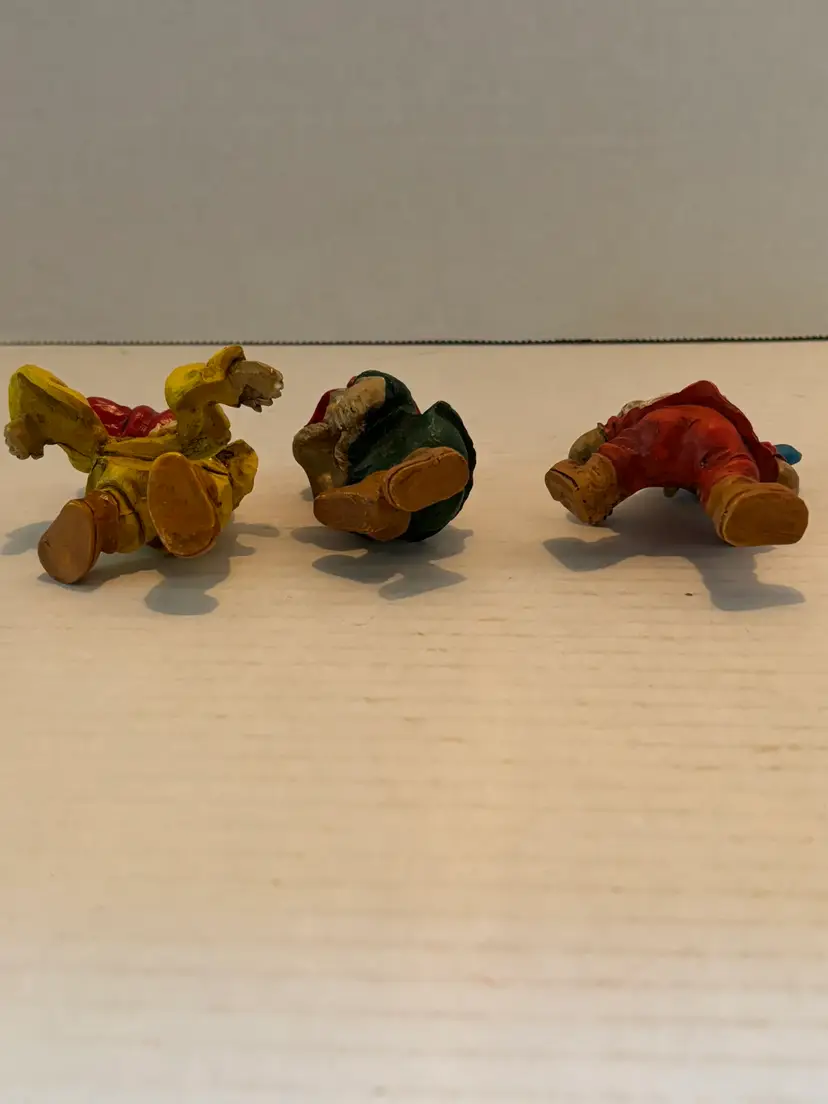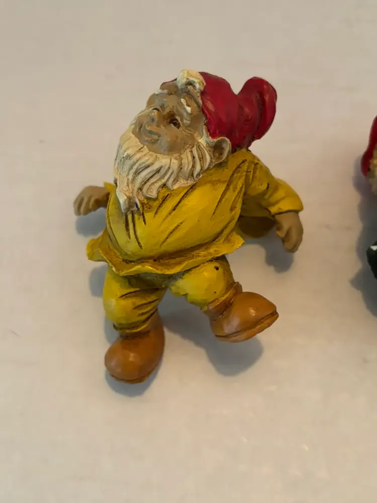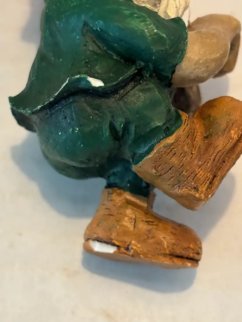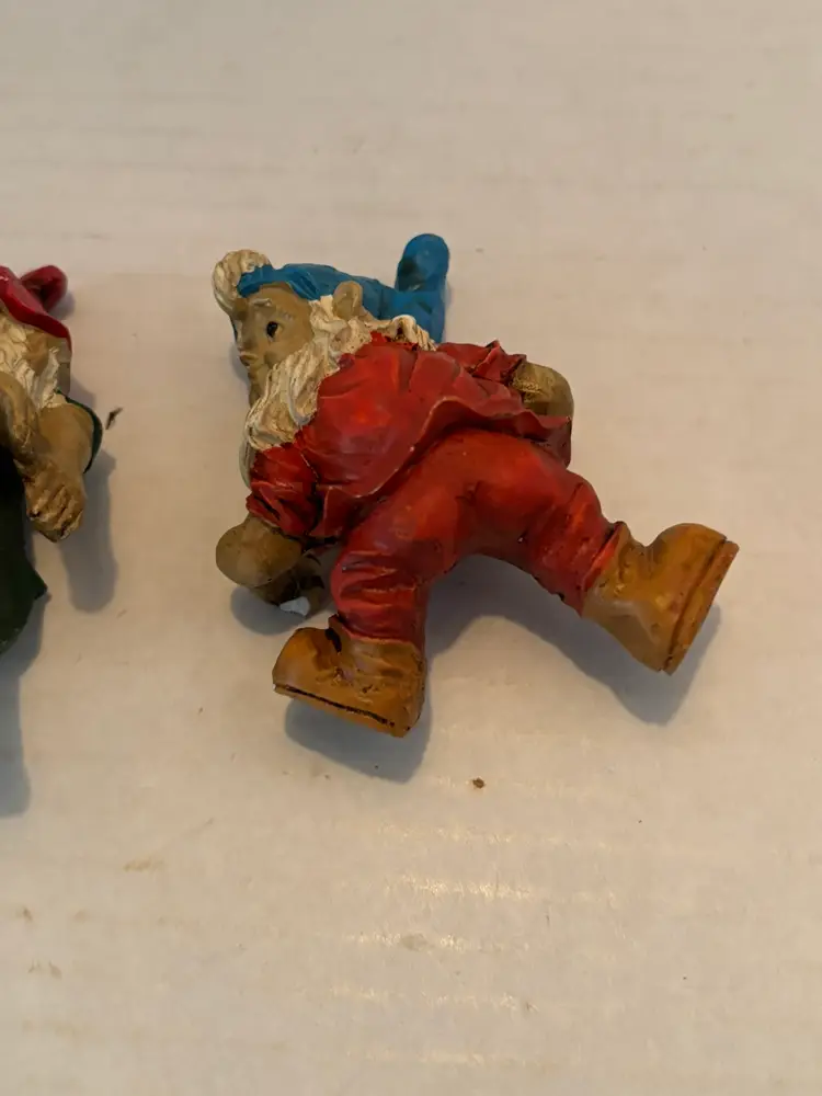 This vintage set of 3 gnome figurine hangers-on is a charming addition to any fantasy-themed collection. The green, yellow, and red resin figurines feature gnome-like characters that will bring a touch of whimsy to any space. These unbranded figurines are a unique find for collectors of elves, gnomes, and pixies, adding a magical touch to their display. Perfect for fans of fantasy and mythical creatures, these figurines are sure to delight with their unique design and vibrant colors. 2 of them have some small chips....SEE PICTURE FOR DETAILS