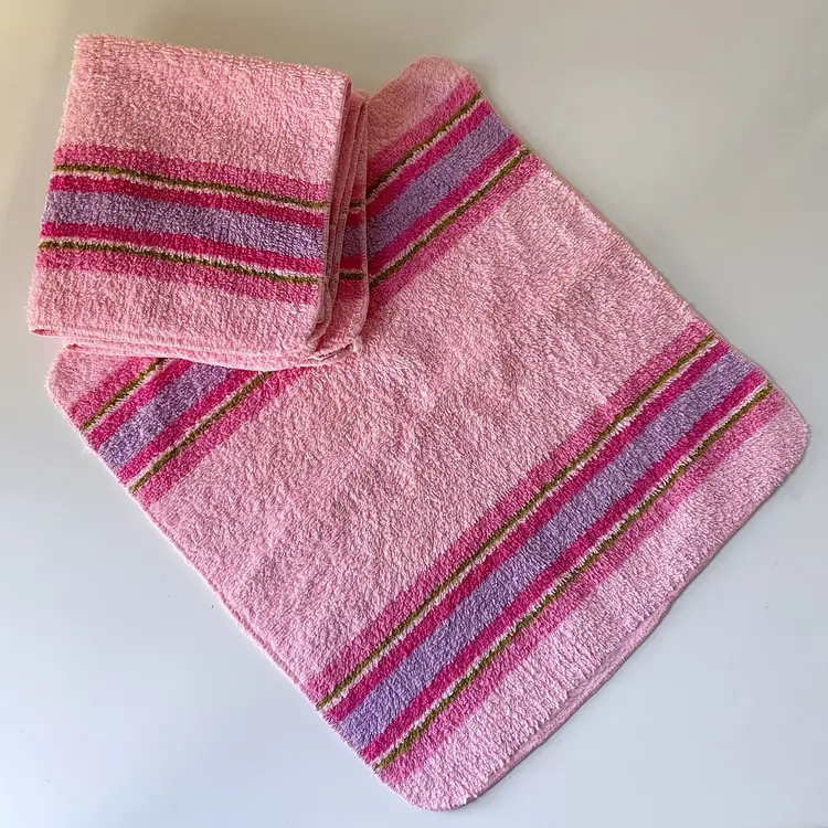 Vintage Set of 3 Pink Striped Washcloths by Cone Mills. Cute lot of 3 washcloths. Cone tag, marked 100% cotton made in USA. Preowned, but I’m good vintage condition. Apx 12” x 11”.