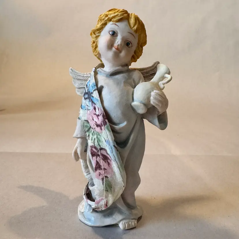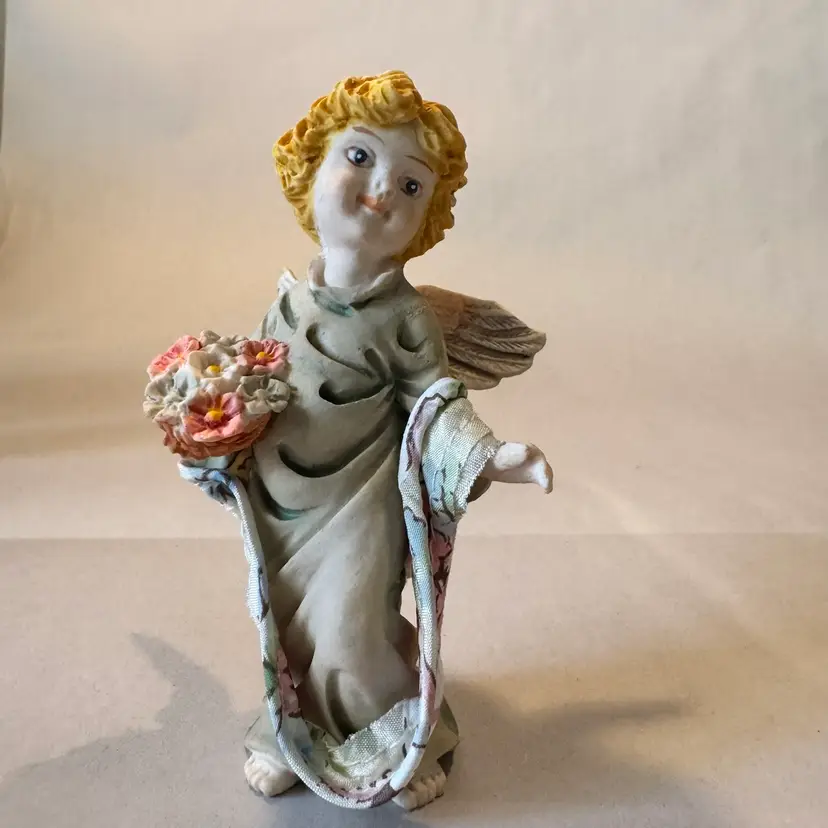 Preowned in great condition angel holding flowers has a chip on one wing, it’s the tip. Please see pictures of their part of the description.