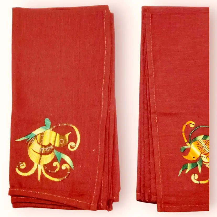 – Brand: Unbranded – Type: Napkins – Color: Red – Number in Pack: 4 – Material: Cloth – Features: Embroidered