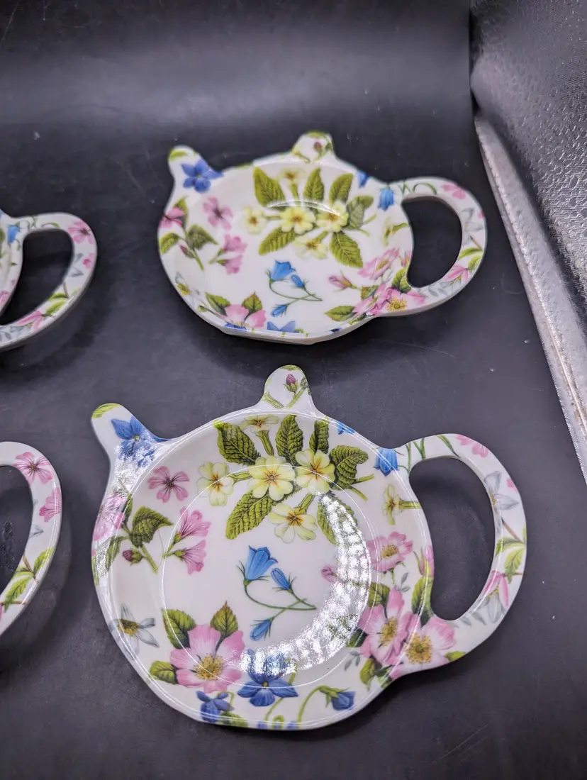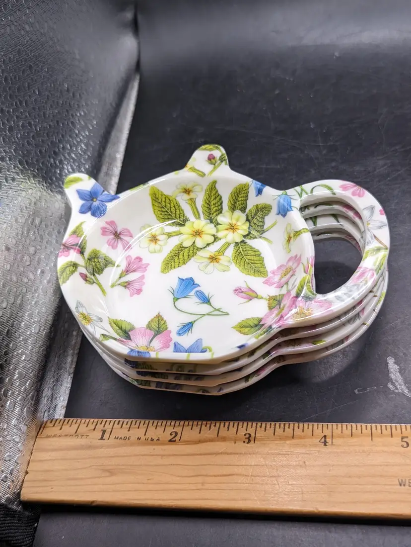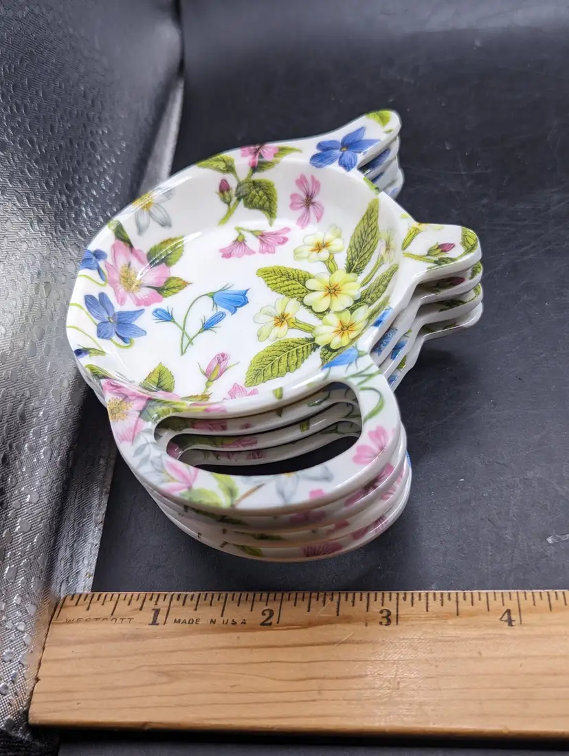 This is a lovely Vintage Set of 4 Melamine Tea Bag Holder Floral Design. Please see all pictures for condition and measurements.