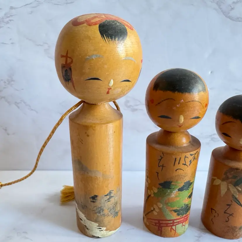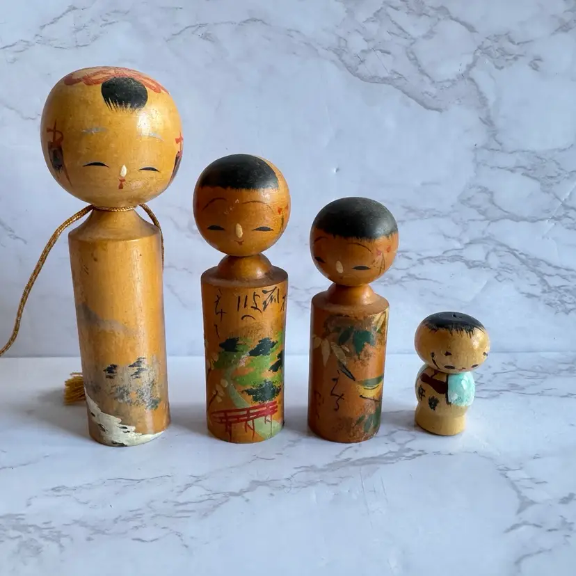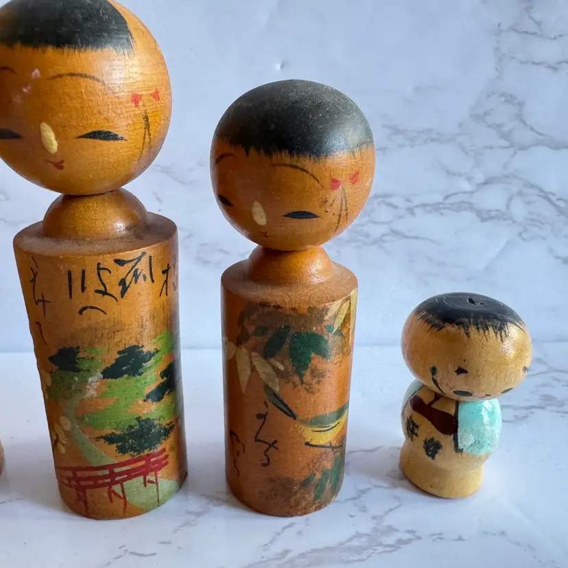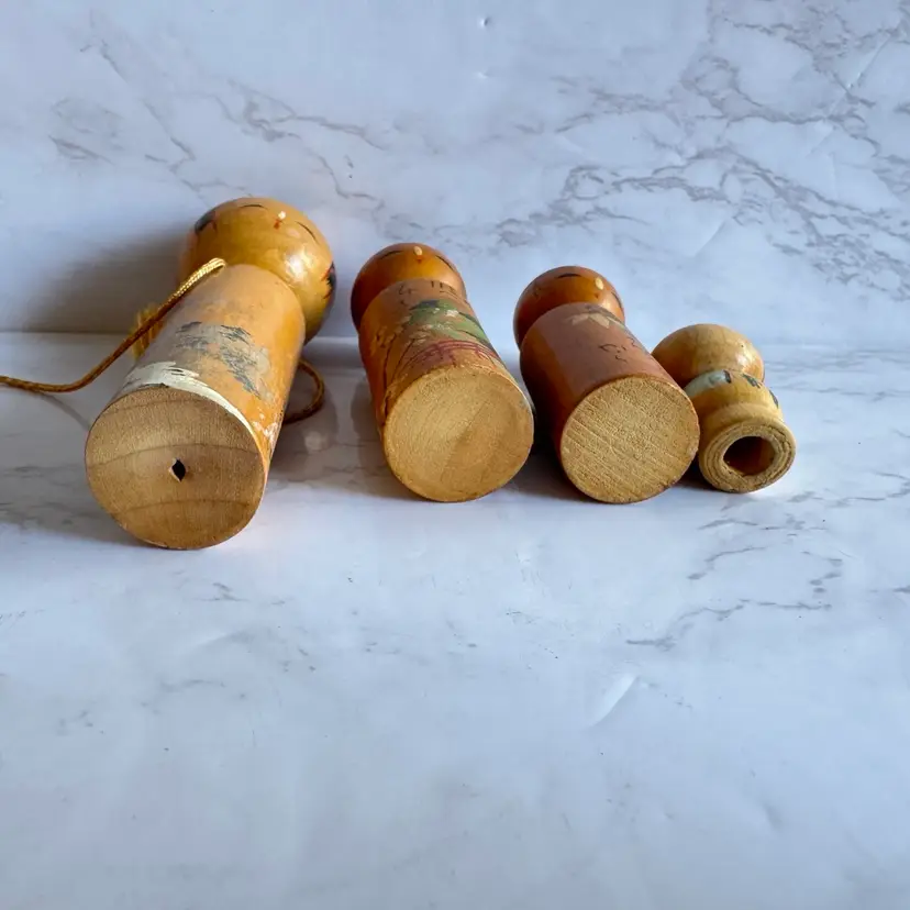 The two middle sizes are a matching set, but the others are just singles added in to make a blended family. All in good vintage condition