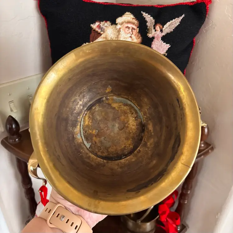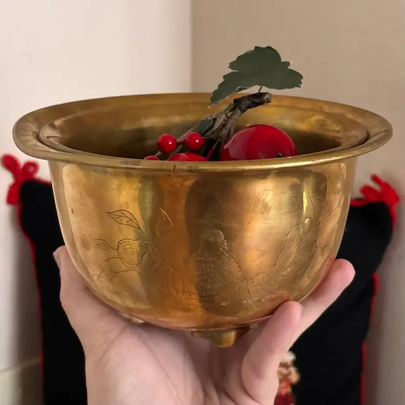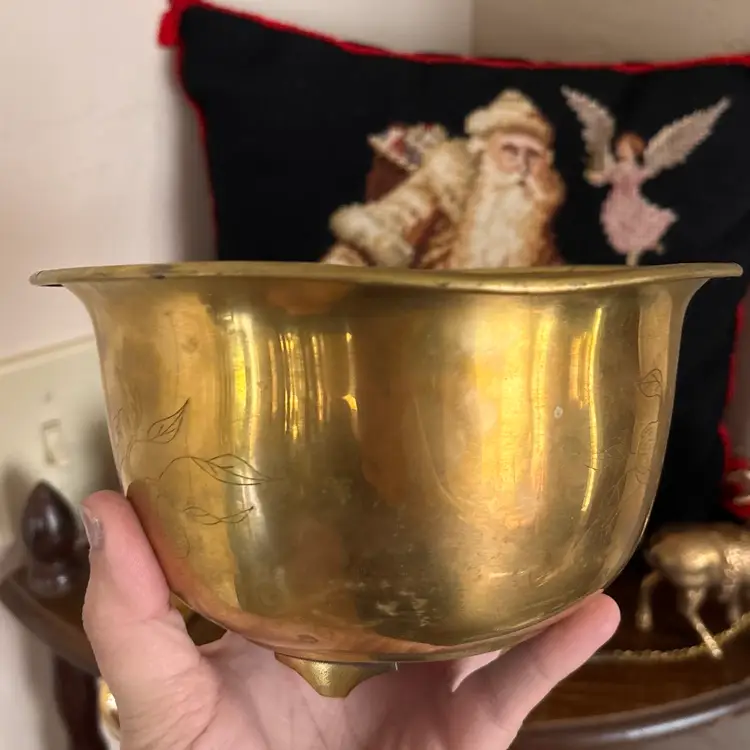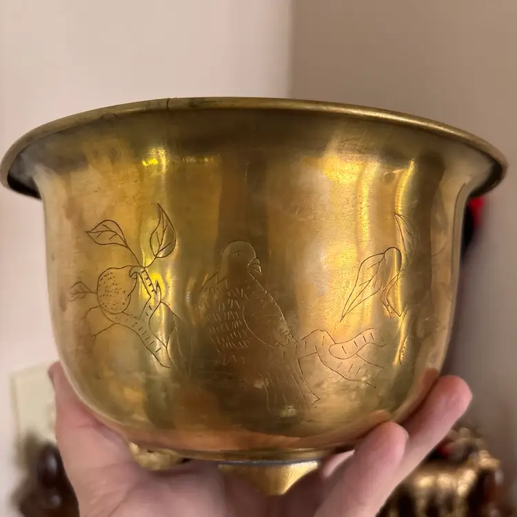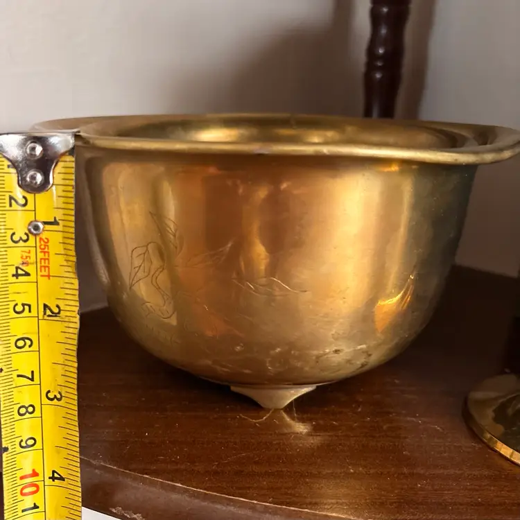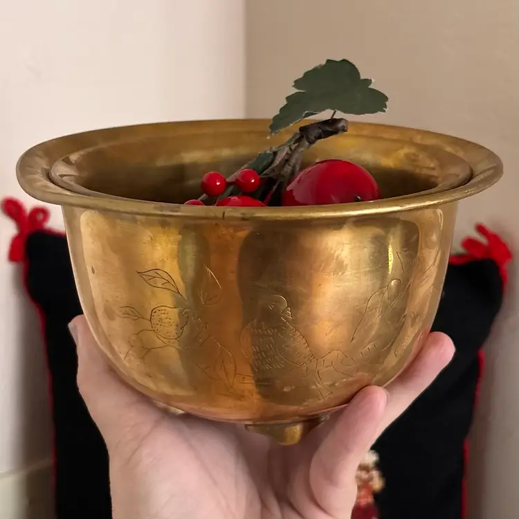 Beautiful brass bowls 3”tall x 7”diameter Vintage wear & patina as shown- dent on side of larger bowl