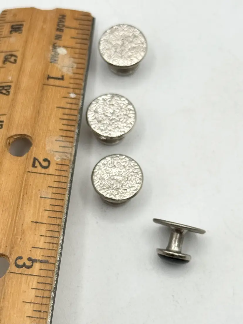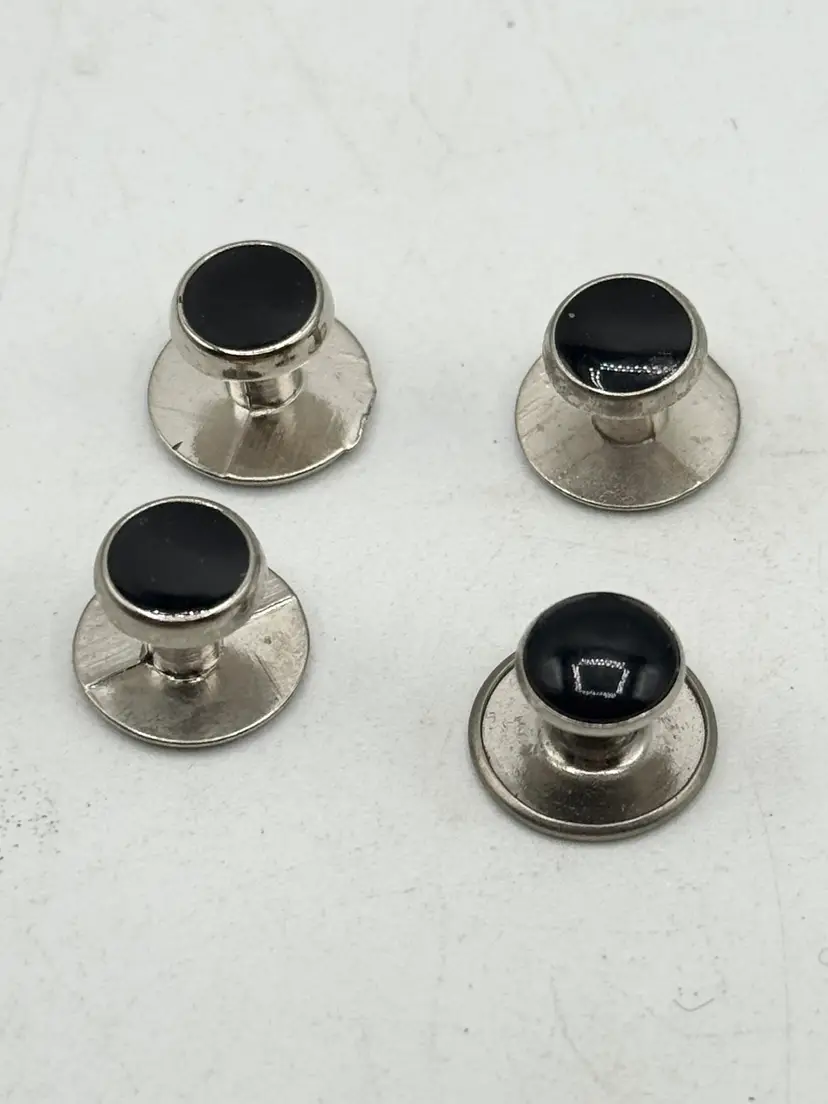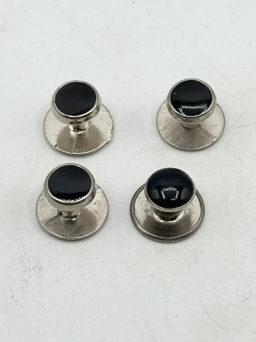 Vintage set of four tuxedo stud buttons. Silver tone and black enamel. Tuxedo stud buttons. Set of four. MN55HG.