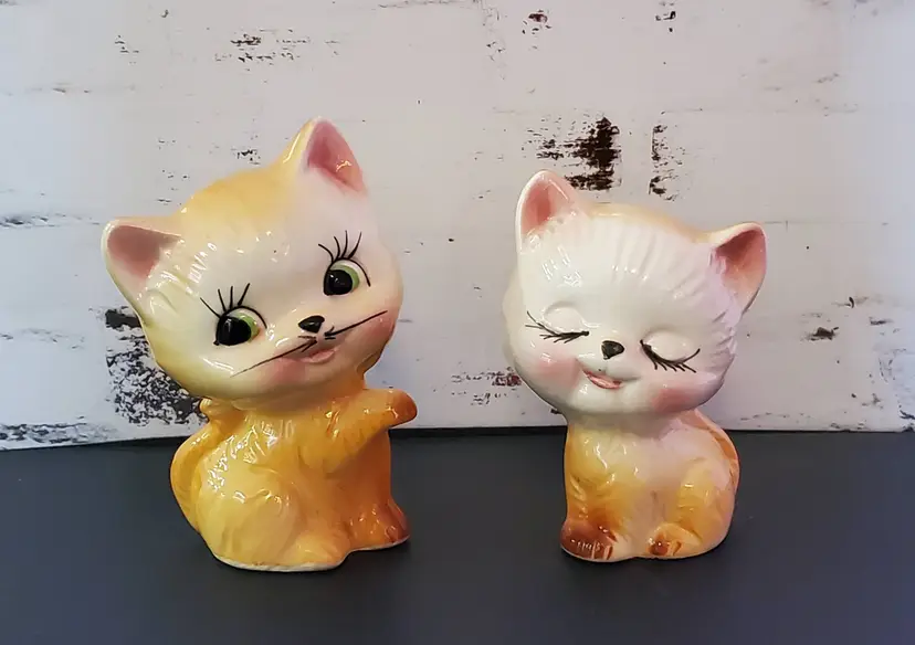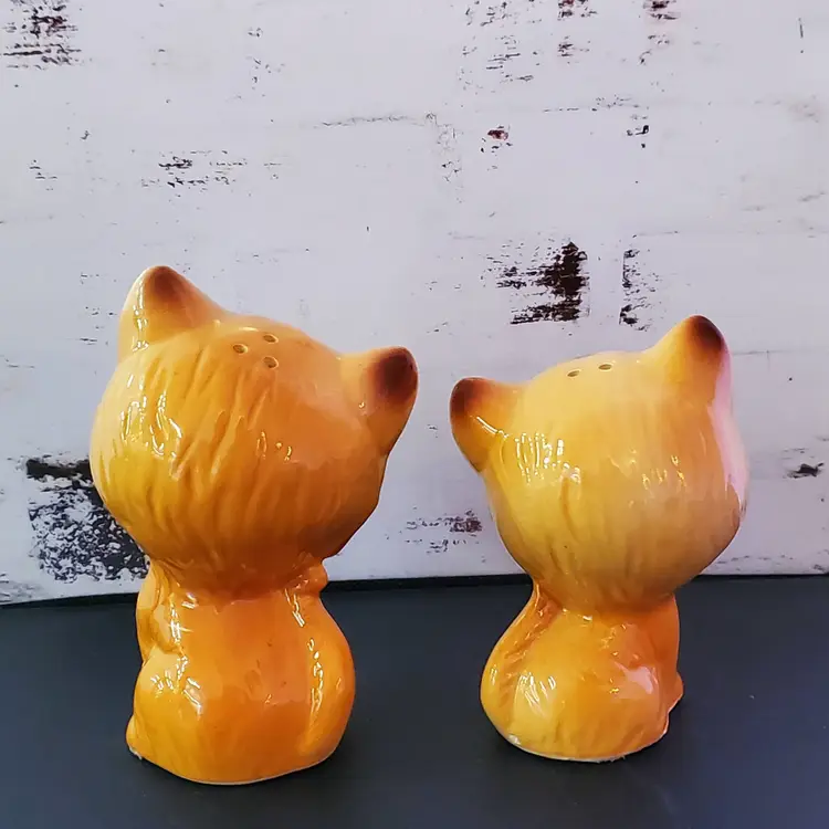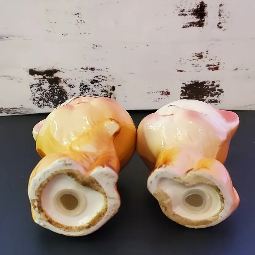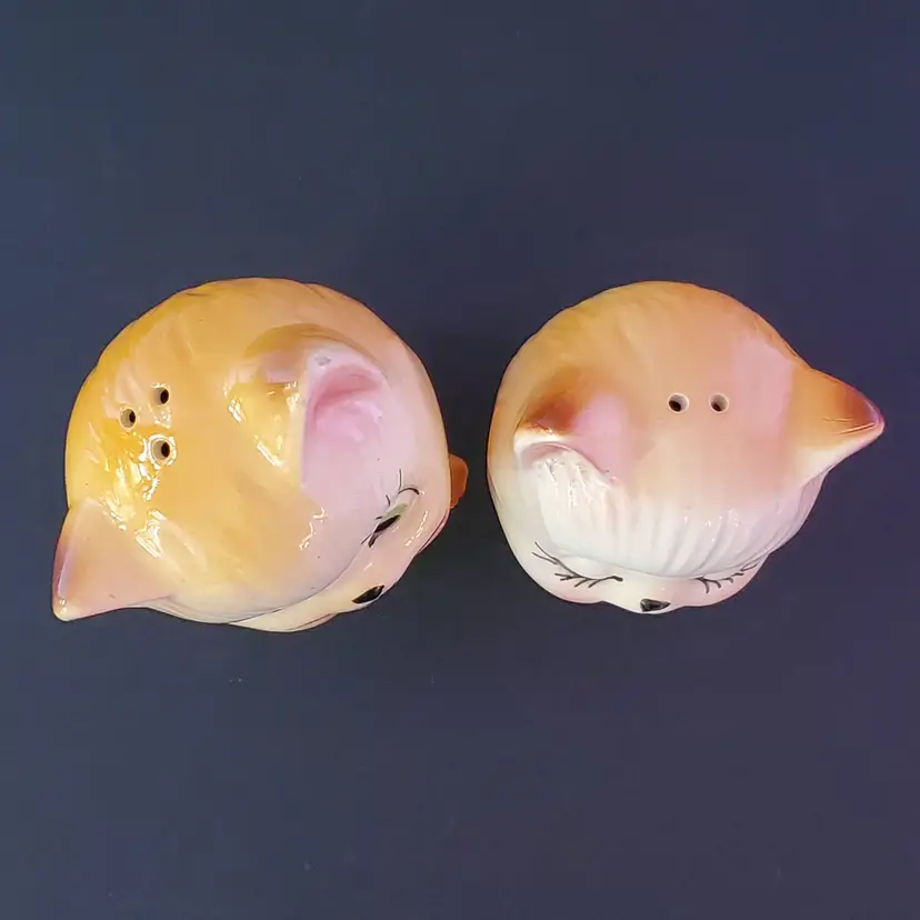 Vintage Set Of Kitschy Kitty Salt & Pepper Shakers. Good condition, there is a tiny flea bite on ms. kitties ear.
