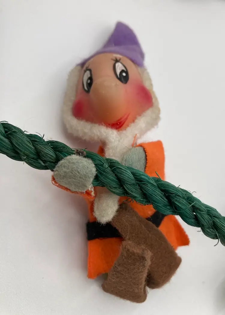 The Seven Dwarfs tried to help me set up today! Super cute vintage ornaments, all seven dwarfs on a thick green rope perfect for hanging. Approx 37” in length, each dwarf is approx 2x4”. There is some staining in a few spots but good condition for age. This item ships from Toronto CA within 3 business days and shipping time is 5-10 business days. COMBINED shipping offer, this item ships with any other item for only $2.