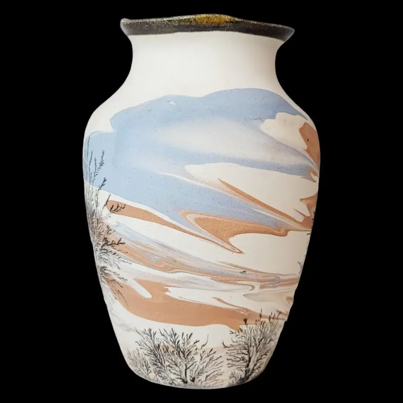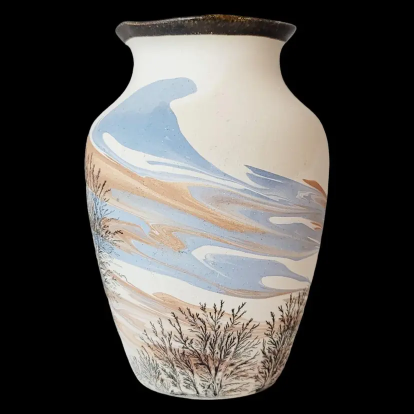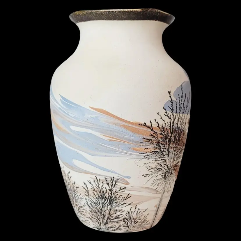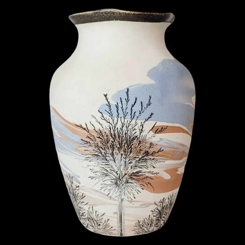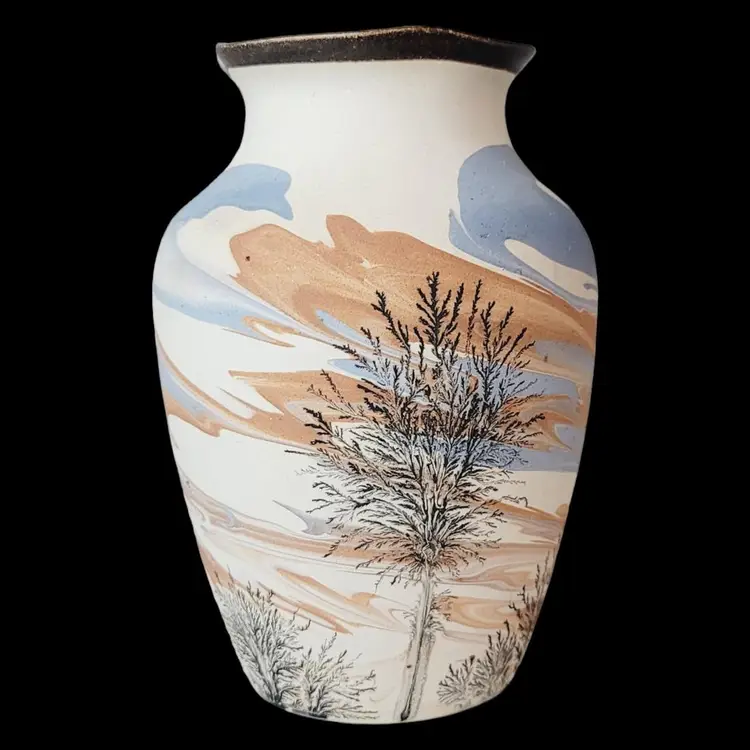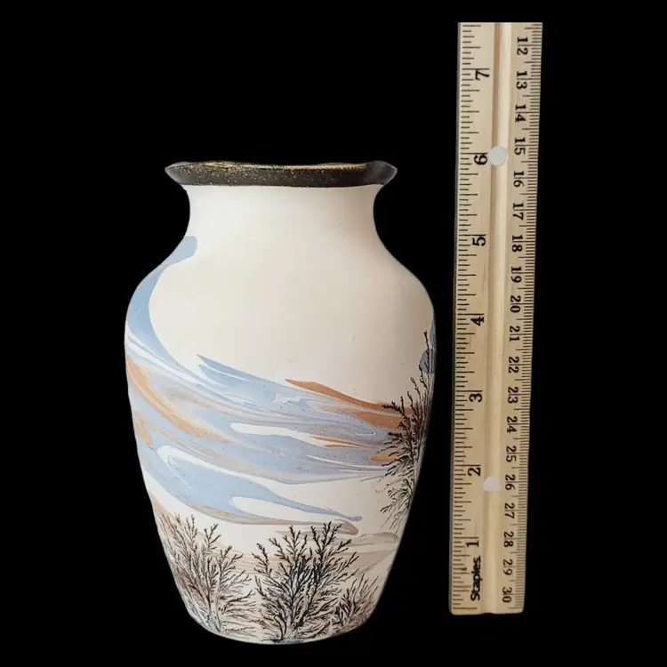 Vintage Sevierville Pottery Tennessee Hand Painted Trees Swirl Vase 6"