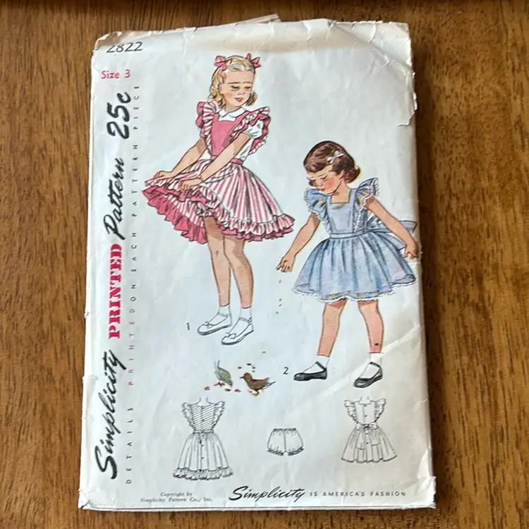 Vintage 1940’s and 1960’s children’s full patterns from Simplicity. All have instruction sheets and pattern pieces. Envelopes in good condition, pieces and instructions in excellent condition. SET of 3
