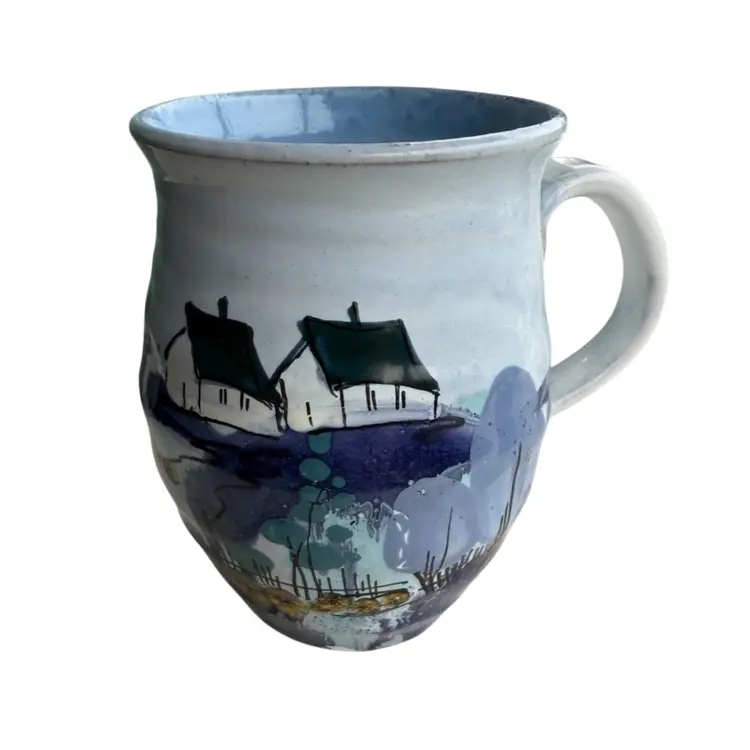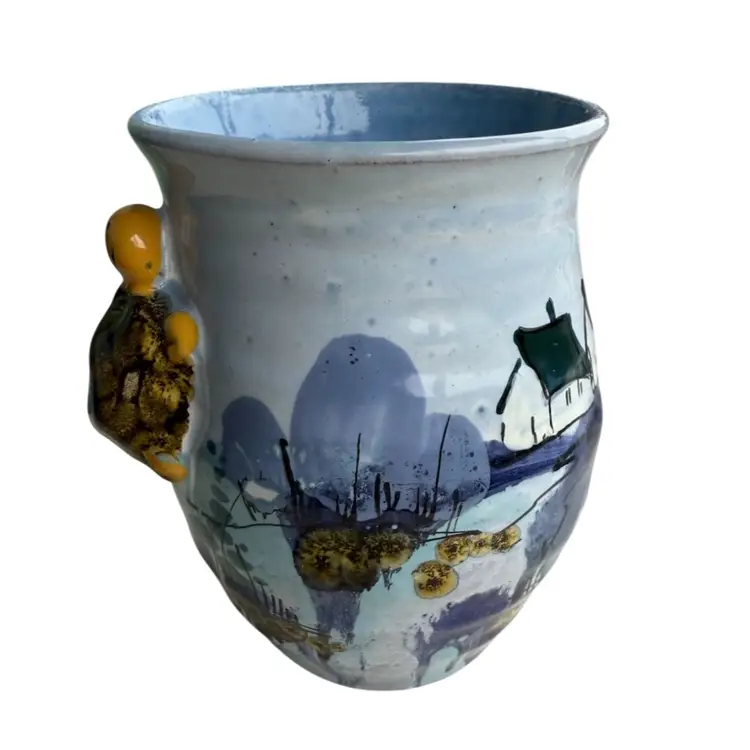 vintage Seyko mug hand painted in Chemnitz Germany. This whimsical figural turtle mug is painted with a Alpine village. Figural turtle is climbing on the side of the mug 4" tall and 3 1/4" at the top and will hold approximately 10oz. The mug is in a new condition