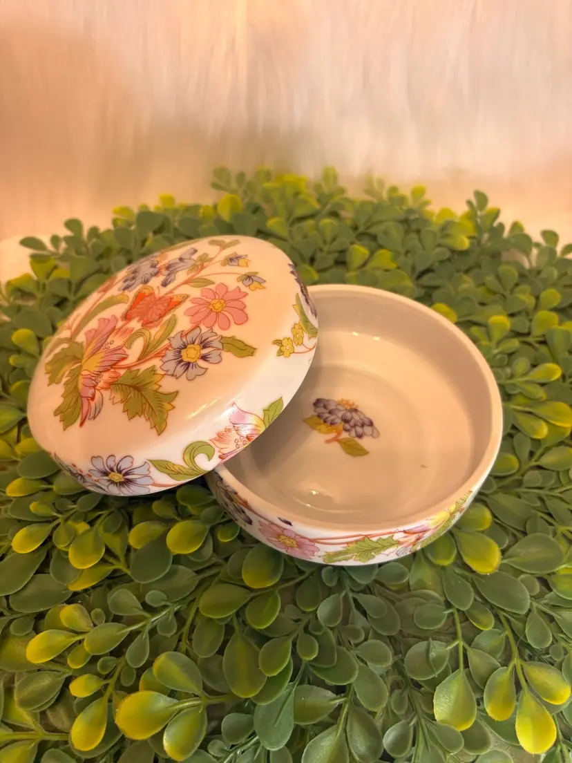 Vintage Seymour Mann “Country Butterfly” Porcelain Trinket Dish with lid, flower details line up perfectly for a seamless look