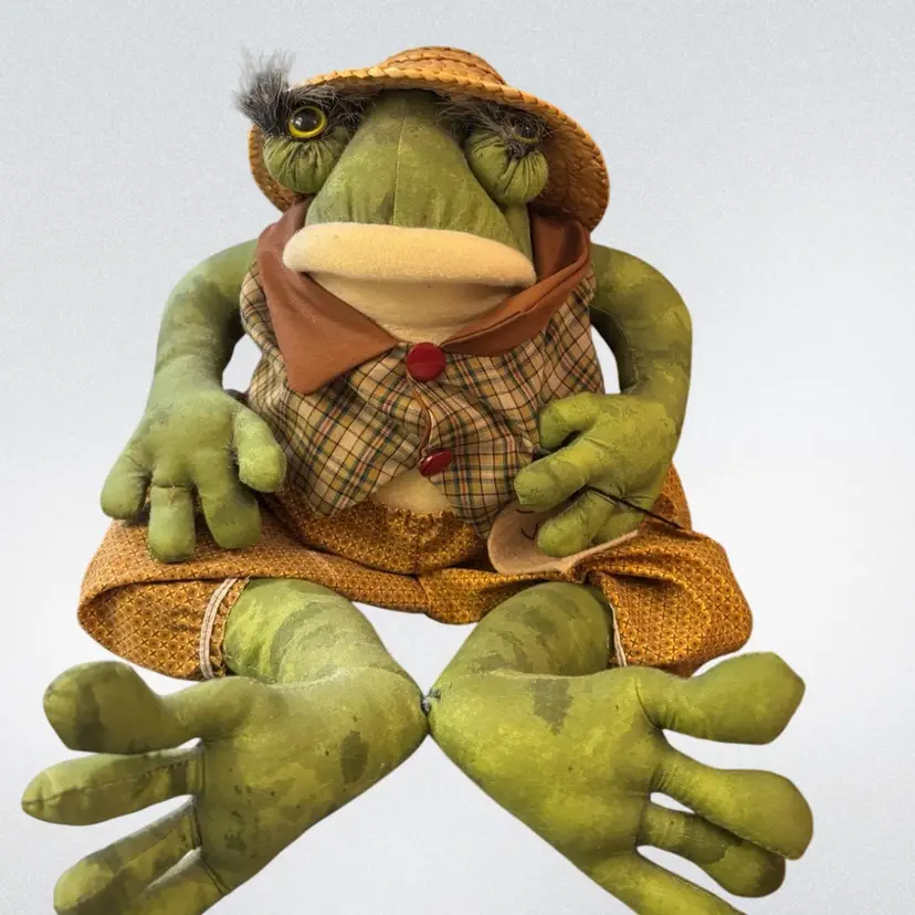 Perfect for frog collectors, country cottage décor, or anyone who loves whimsical vintage plush!