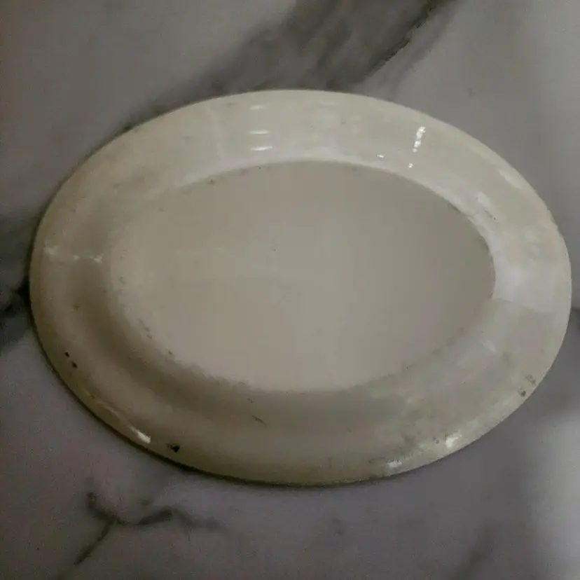 7 in Relish Dish possible maker Salem Used. Small chip on underside edge, slight fading.