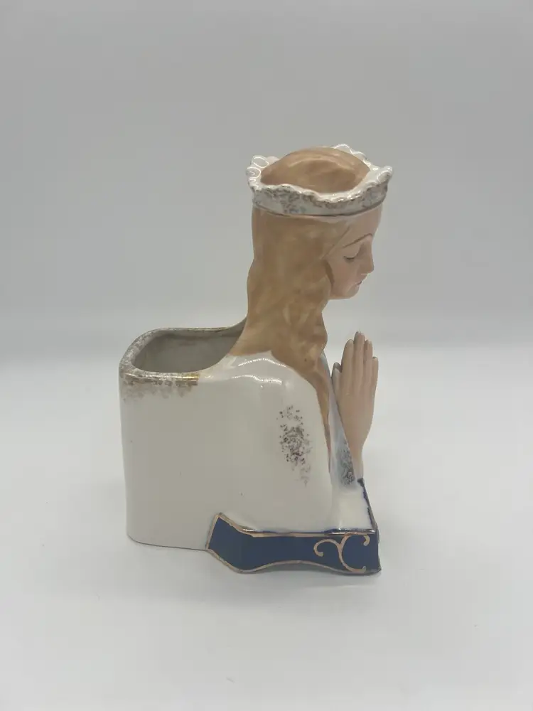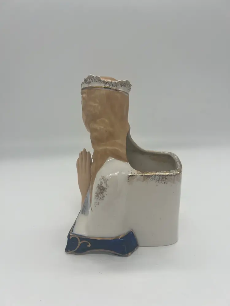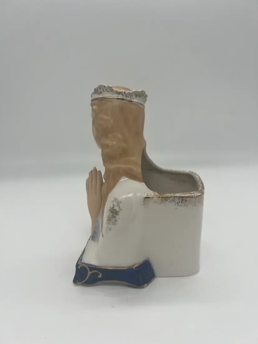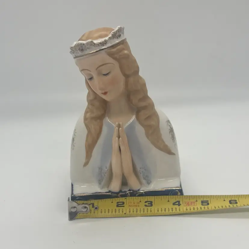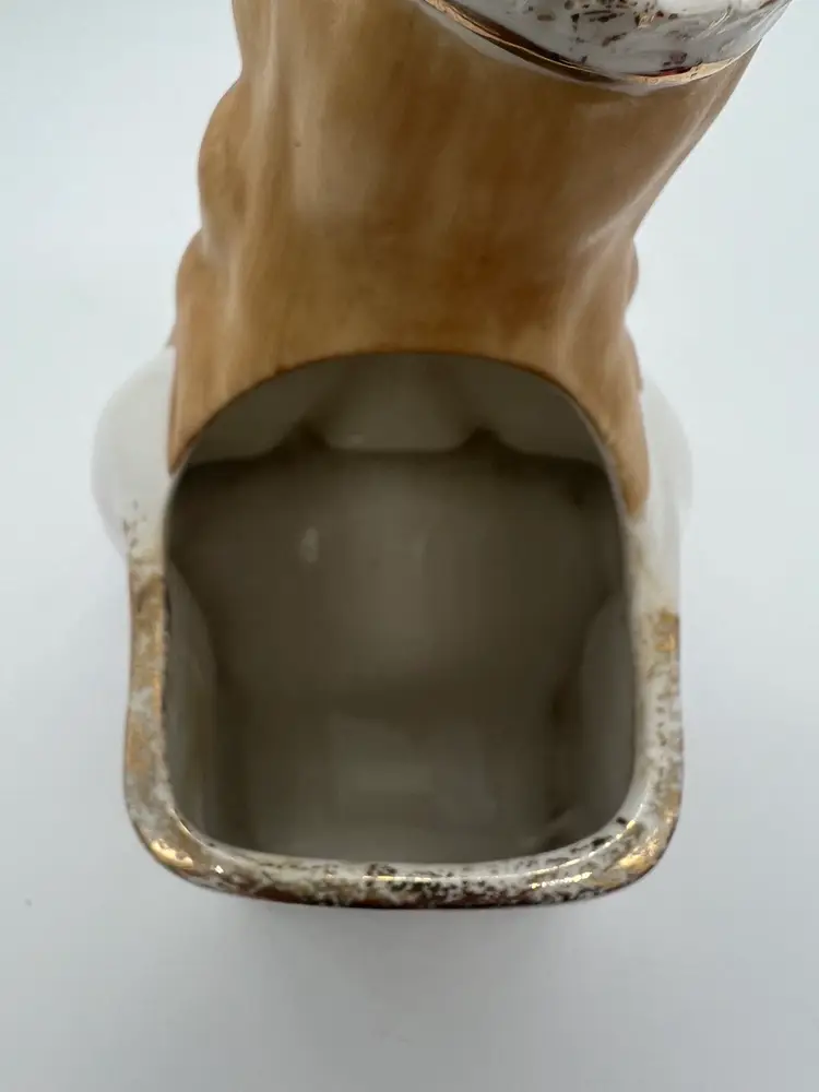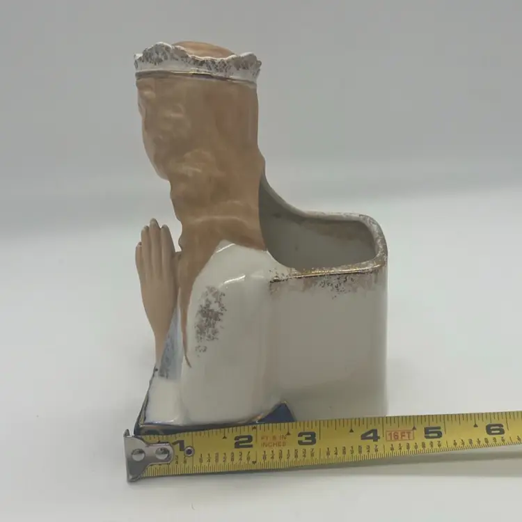 Excellent condition. No chips or cracks. Measures about 6 1/2 inches tall, 4 inches long and wide. The first picture is true to the color. I’m not sure why the rest look fuzzy. Sorry!