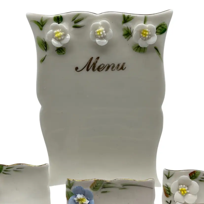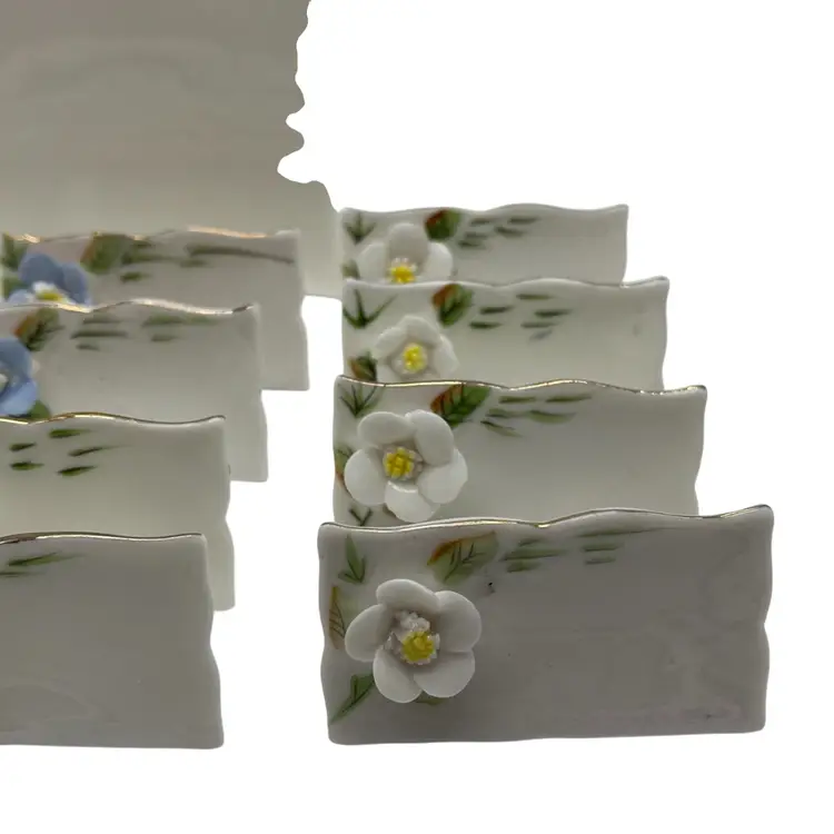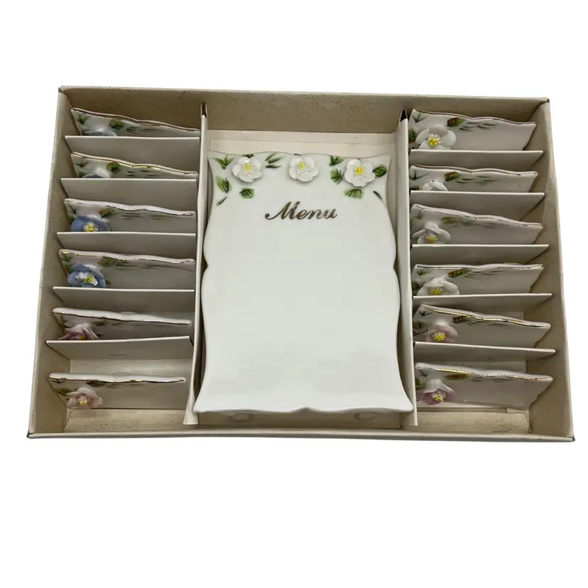 12 place holder cards and menu, with no broken flowers. Spring colors in blue pink & white Taiwan