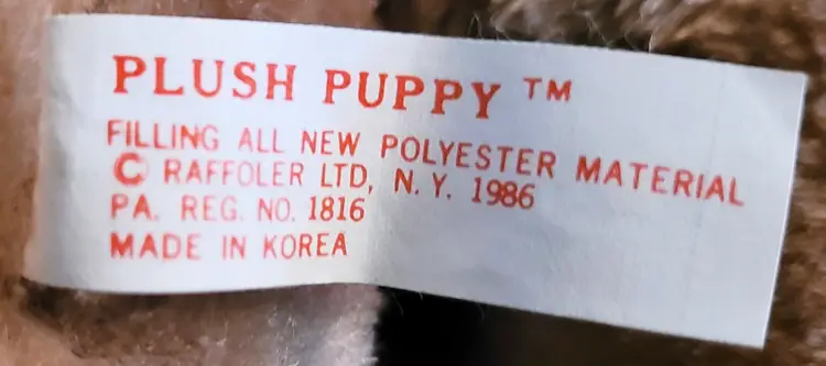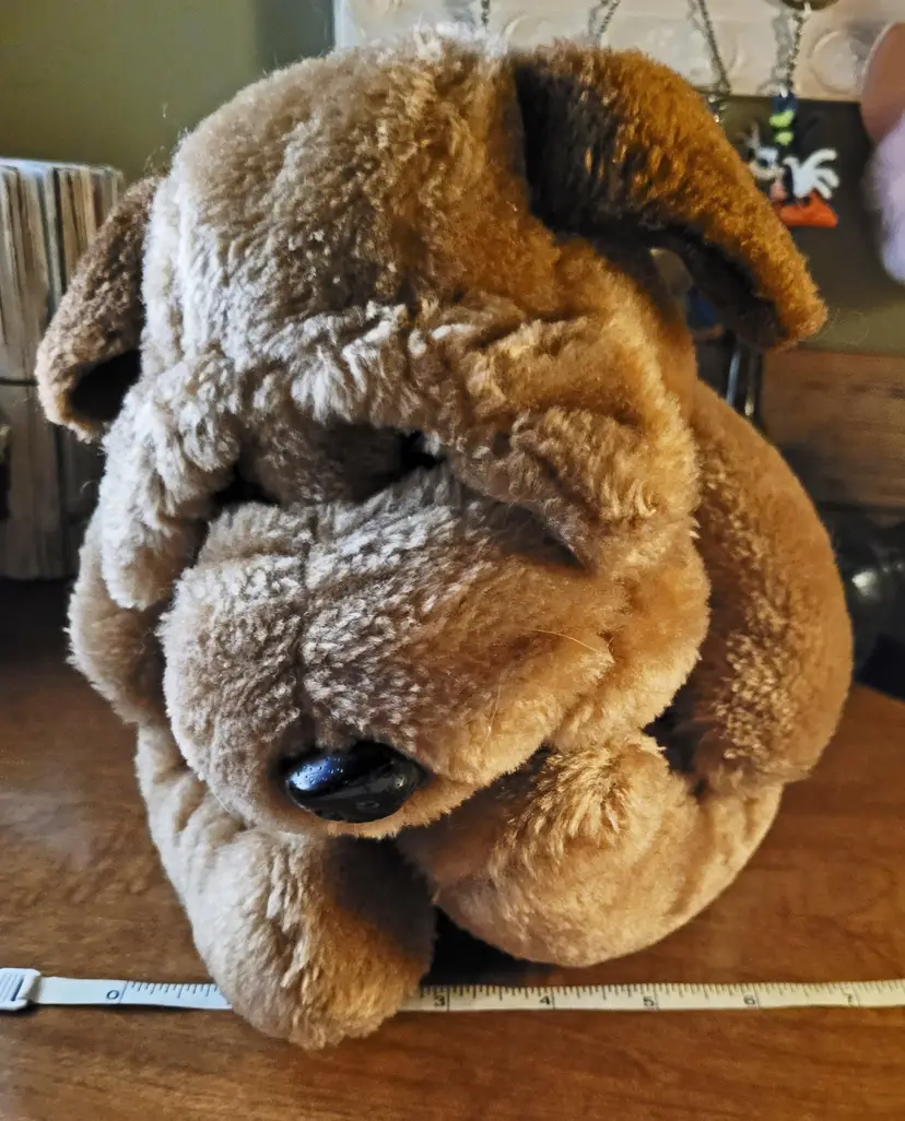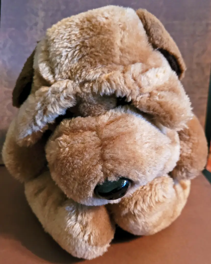 Vintage Shar-Pei Wrinkles. Raffoler 'Plush Puppy' c.1986 Made in Korea. Approx. 6x8x6.5