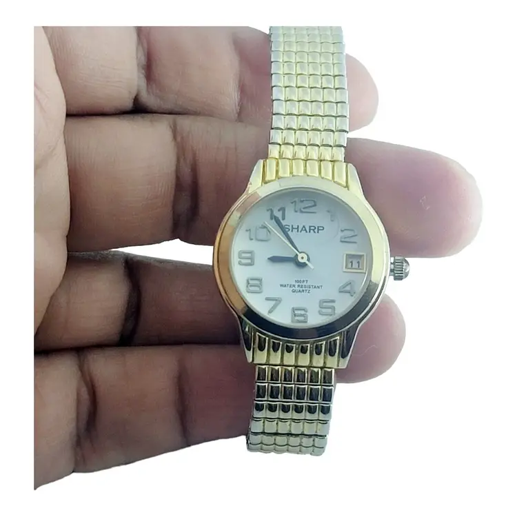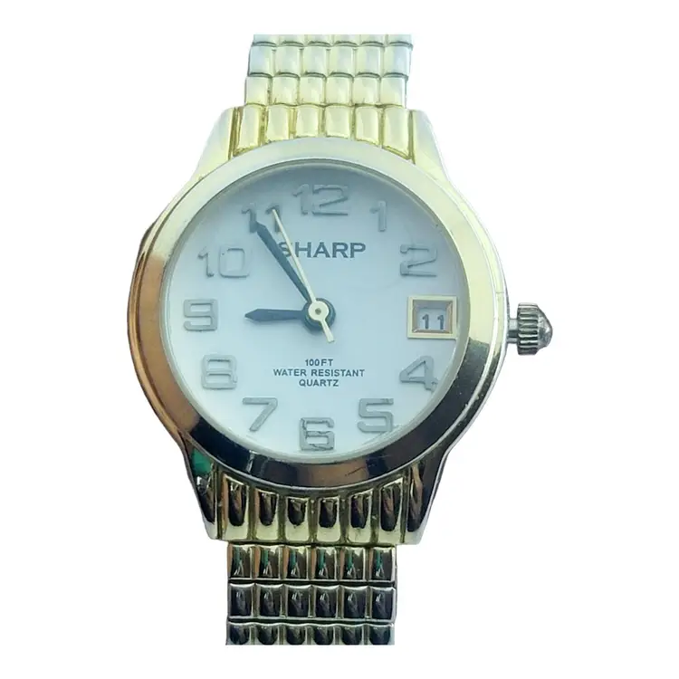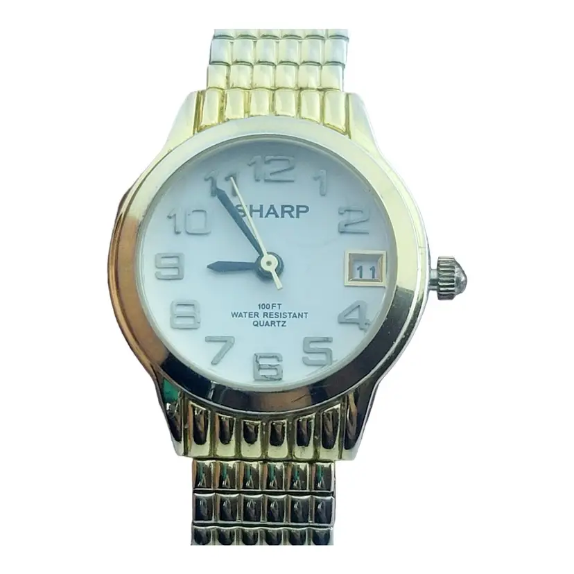 – Movement: Quartz – Water Resistance: 100 m (10 ATM) – With Papers: No – Reference Number: SHP5105 304 – Brand: Sharp – Case Color: Gold – Department: Women – Type: Wristwatch – Band Color: Gold – Band Material: Stainless Steel – Customized: No – Dial Color: White – Style: Casual, Dress/Formal, Classic – With Original Box/Packaging: No – Features: 12-Hour Dial, Date Indicator – Country/Region of Manufacture: Japan – Case Material: Stainless Steel – Display: Analog