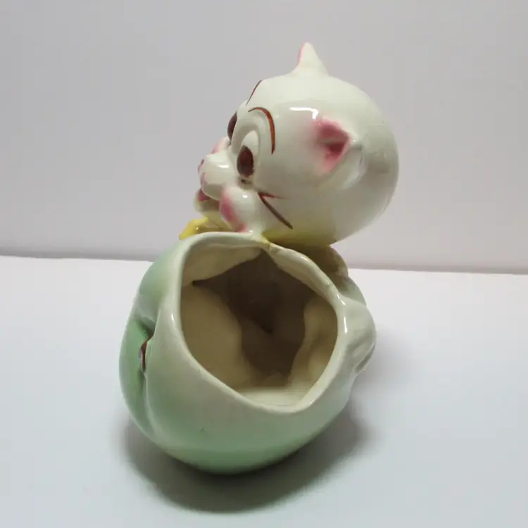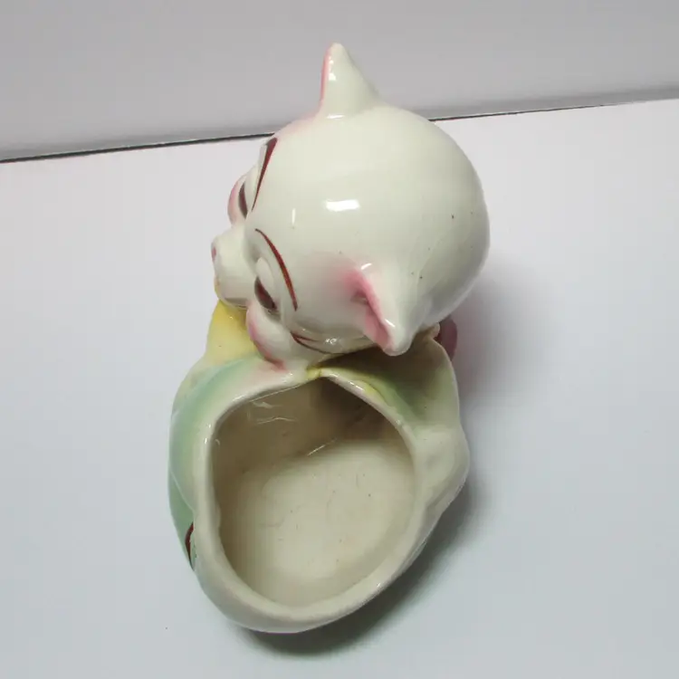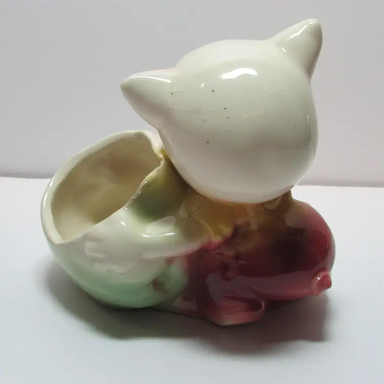 This adorable planter has some wear, there is crazing, still a nice piece to use and display. It is about 5 1/2" x 5 1/2" x 3 1/2". This is shipped from a smoke free home. Thanks for looking! locfb20a/fb7
