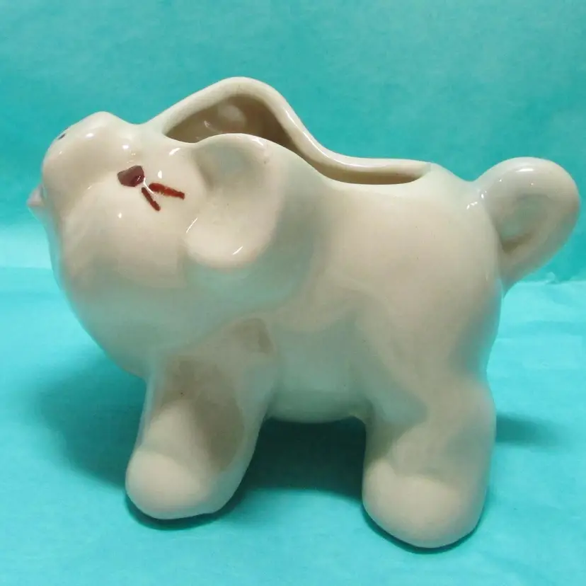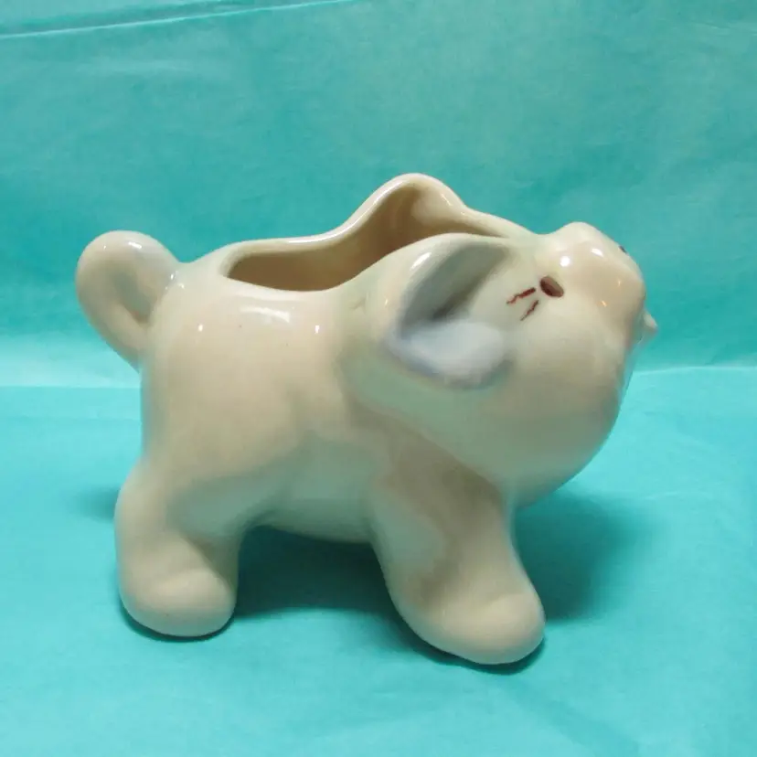 This adorable planter has a some wear, but still a lovely piece to use and display. It is about 3" x 4 1/2" x 3 1/4". This is shipped from a smoke free home. Thanks for looking! locbw10