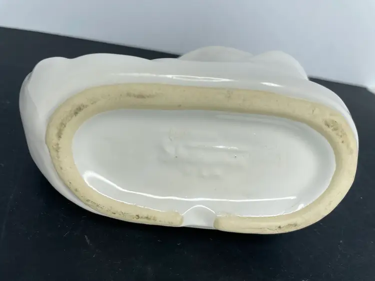This medium-sized planter has a length of 5.5 inches, a width of 2.5 inches, and a height of 3.75 inches. It is an ideal addition to any Christmas decor, and its 1950s style and theme make it a unique and original piece. This Shawnee planter is perfect for teens and adults who love seasonal and decorative collectibles.