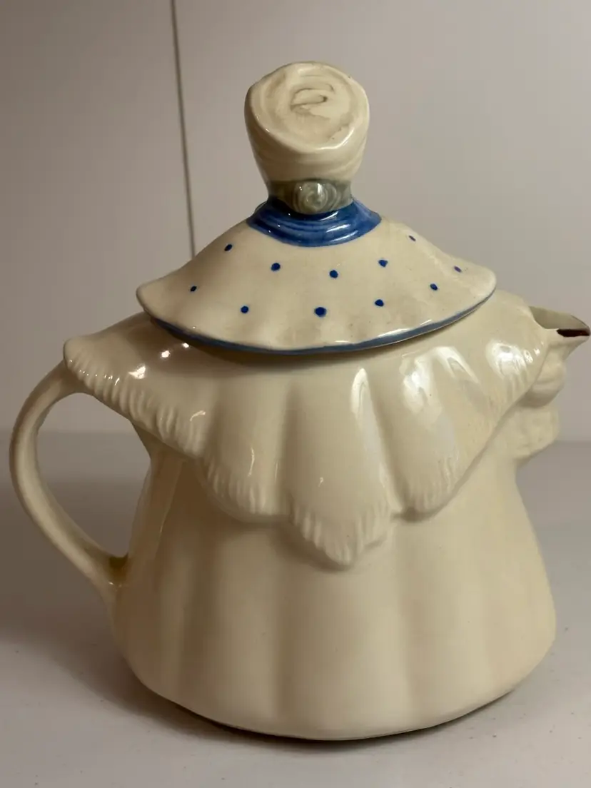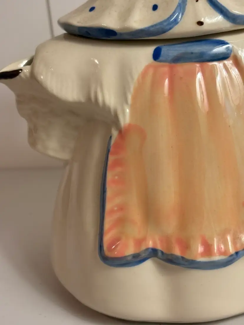 The Vintage Shawnee Granny Ann Teapot is a charming ceramic tea pot made in the United States. This novelty teapot features a multicolor glazed finish, adding a whimsical touch to your tea set collection. Perfect for collectors or those looking to add a unique and nostalgic piece to their kitchen decor, this teapot is sure to bring a touch of vintage charm to your tea-drinking experience.