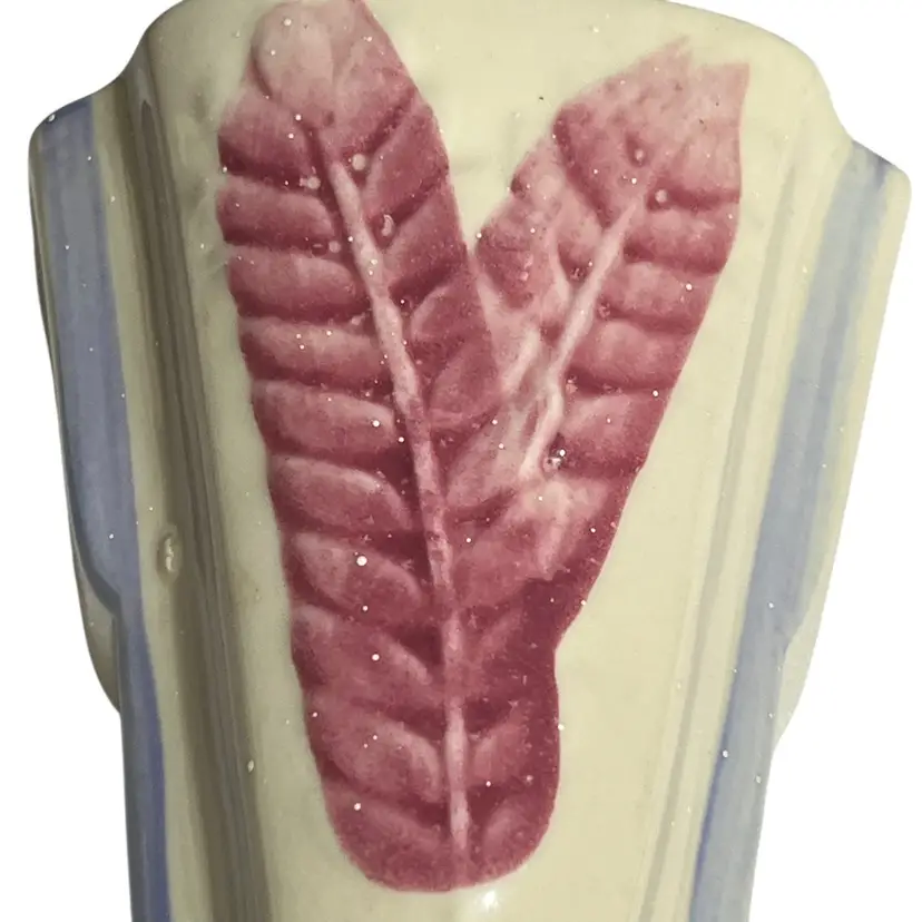 Vintage Shawnee Pink Feathers, Lavender Stripes Wall Pocket 5.75" x 3.75" x 2.5"