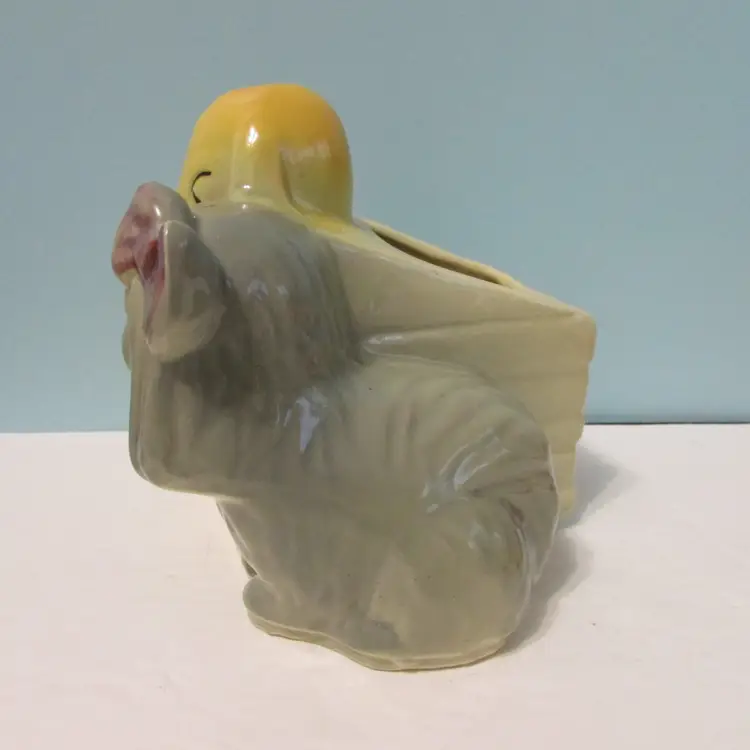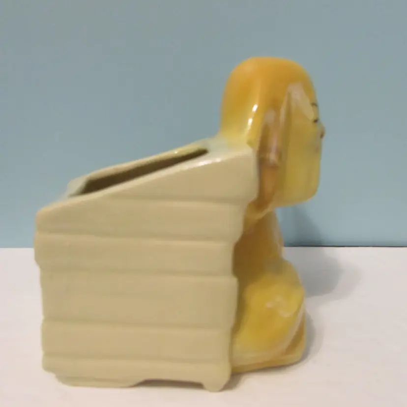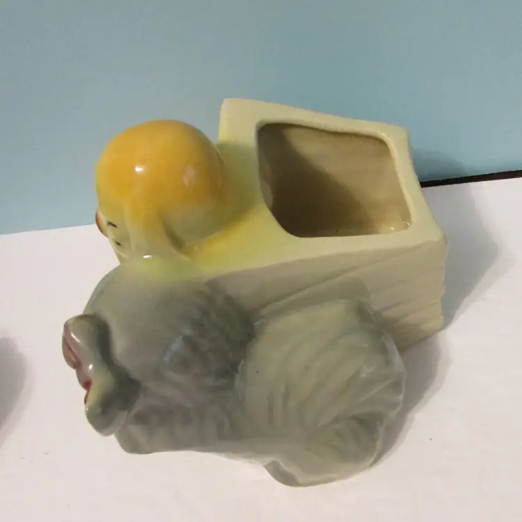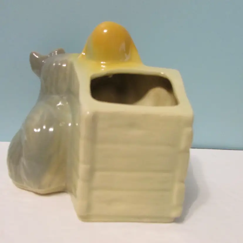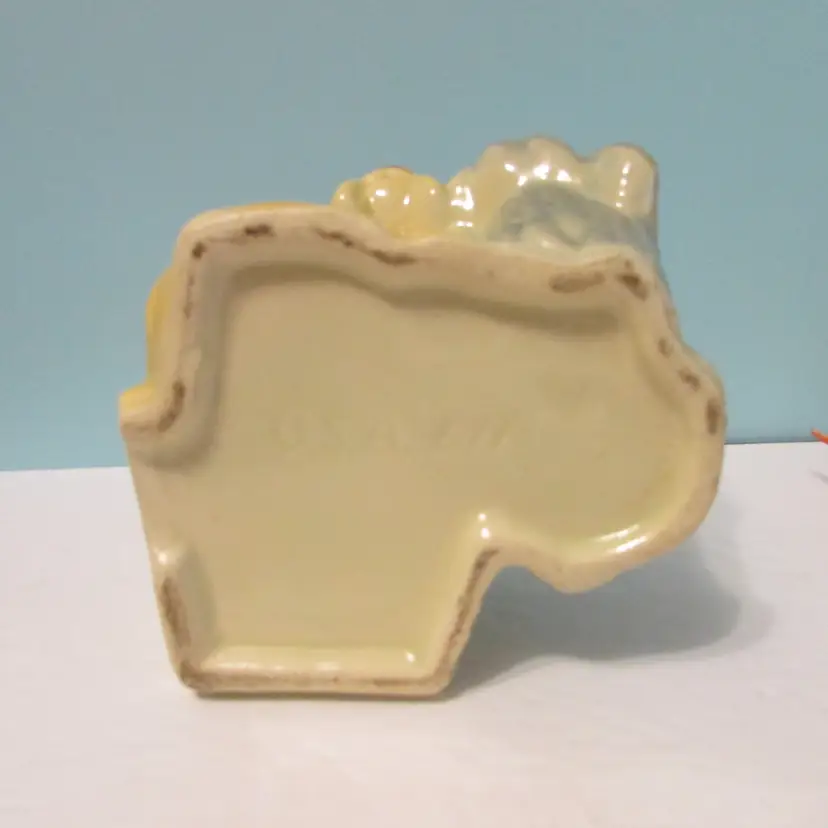 This adorable planter is in good condition, there is some wear on the bottom. It is about 4 1/4" x 4" x 4". This is shipped from a smoke free home. Thanks for looking!
