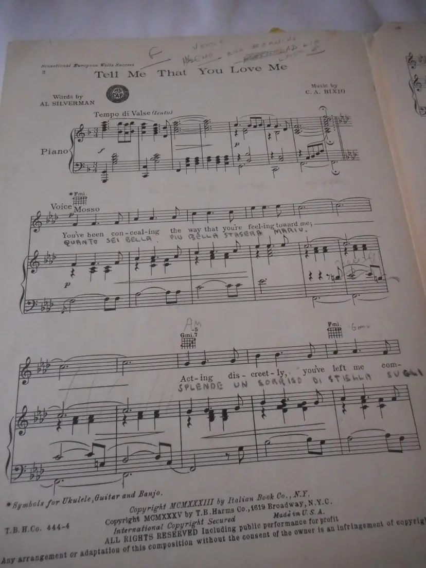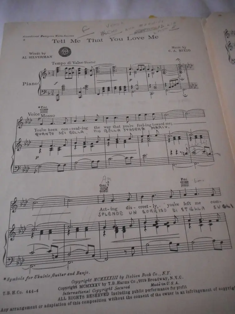 Vintage Sheet Music c 1933 Tell me that you love me waltz English Italian